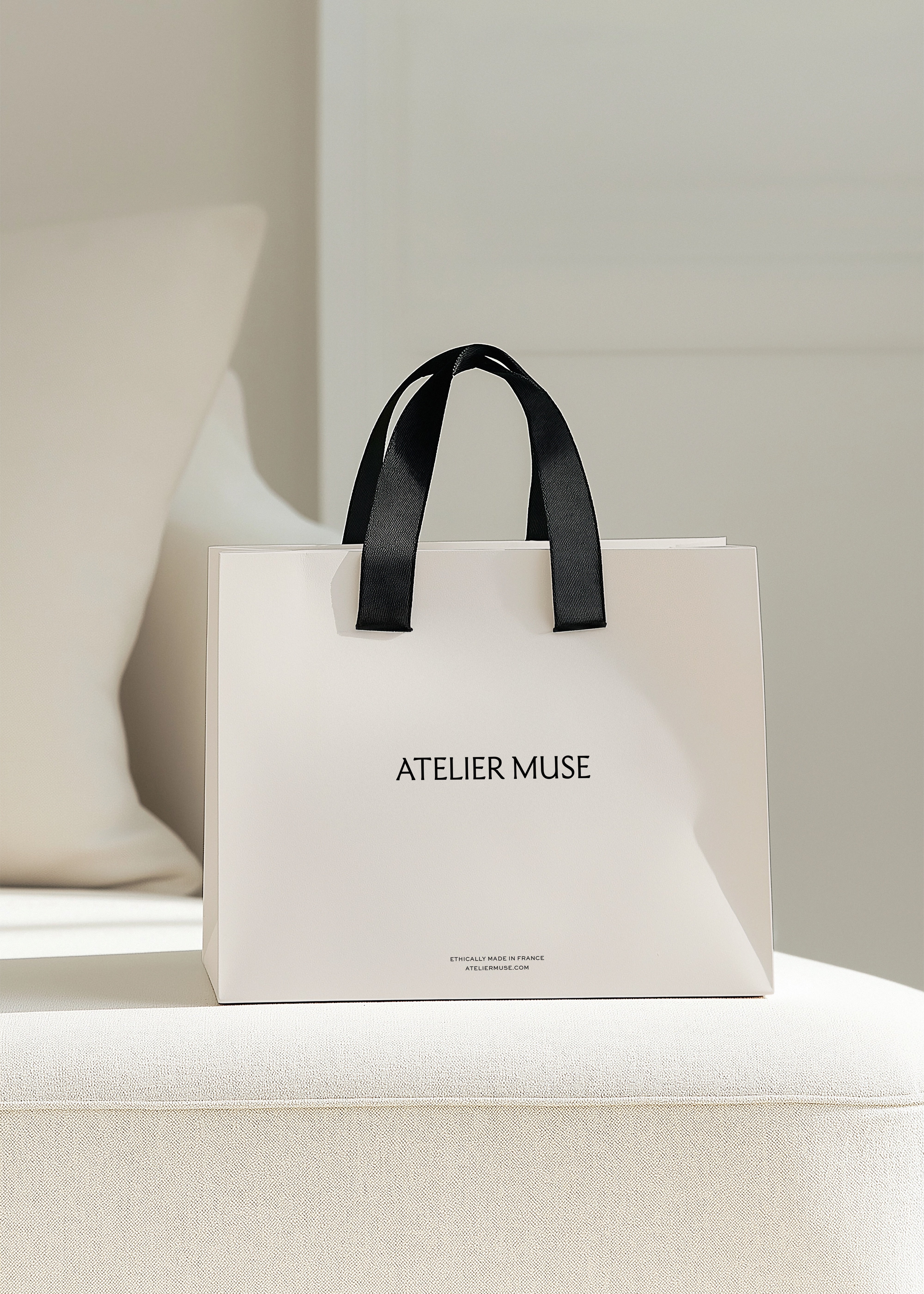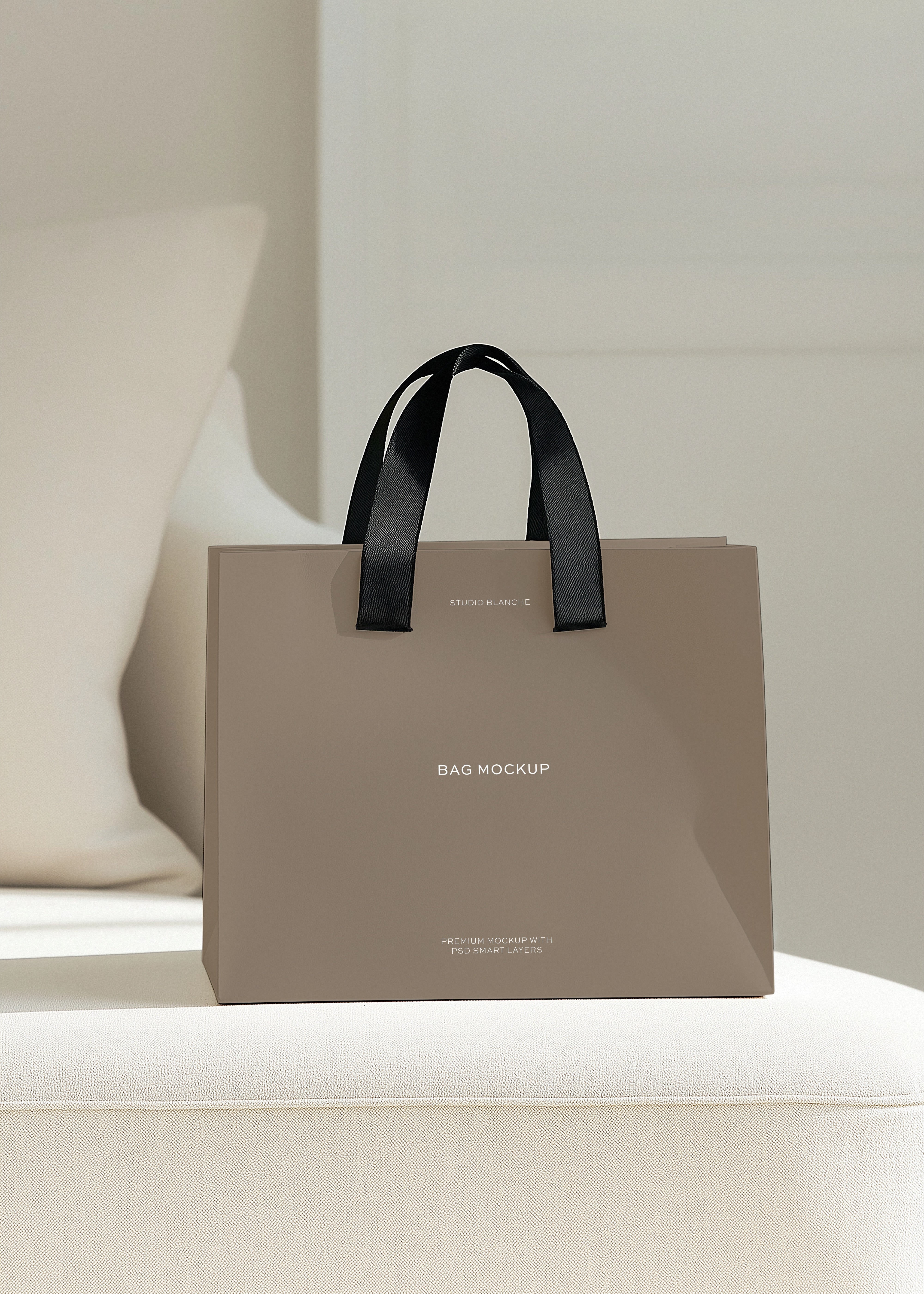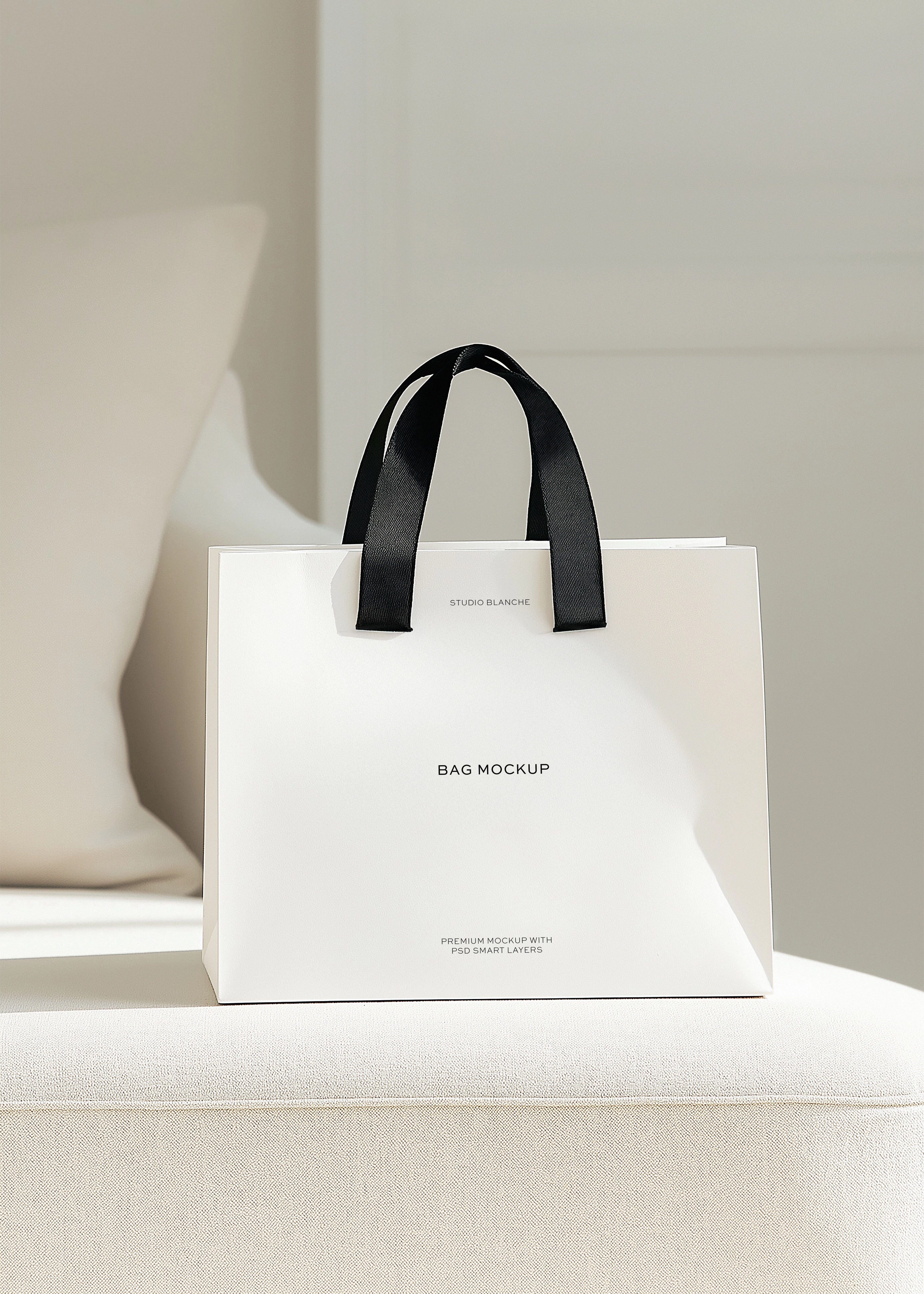 Meet our Shopping Bag Mockup, the tool that allows you to showcase your retail logo designs in a professional way. The bag is elegantly placed on a light cream sofa, allowing your design to take centre stage and truly stand out. Imagine your design on this bag, presented in the soft, inviting light of a tastefully decorated room. This mockup is all about creating that tangible, tactile connection between your design and the potential customer.