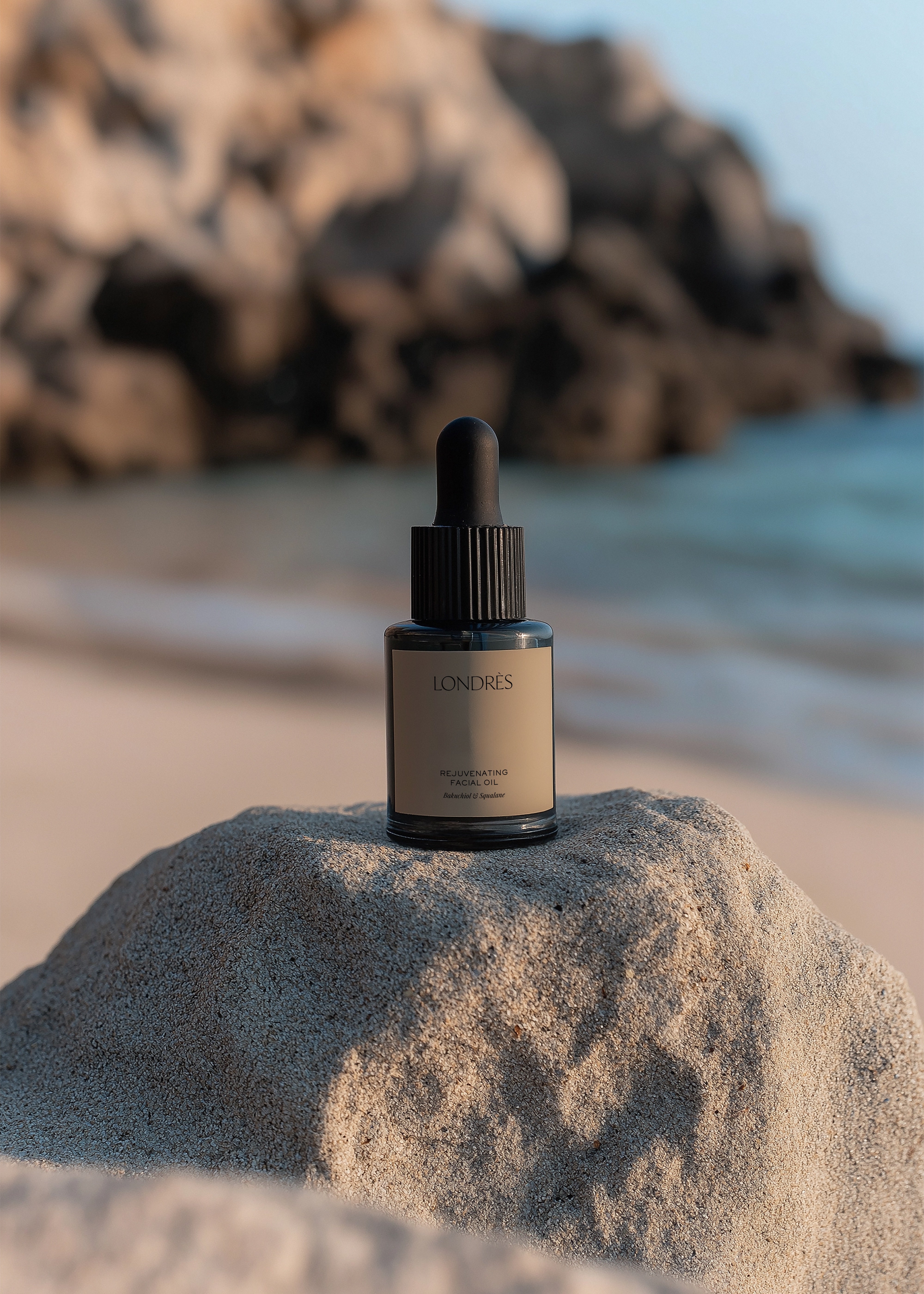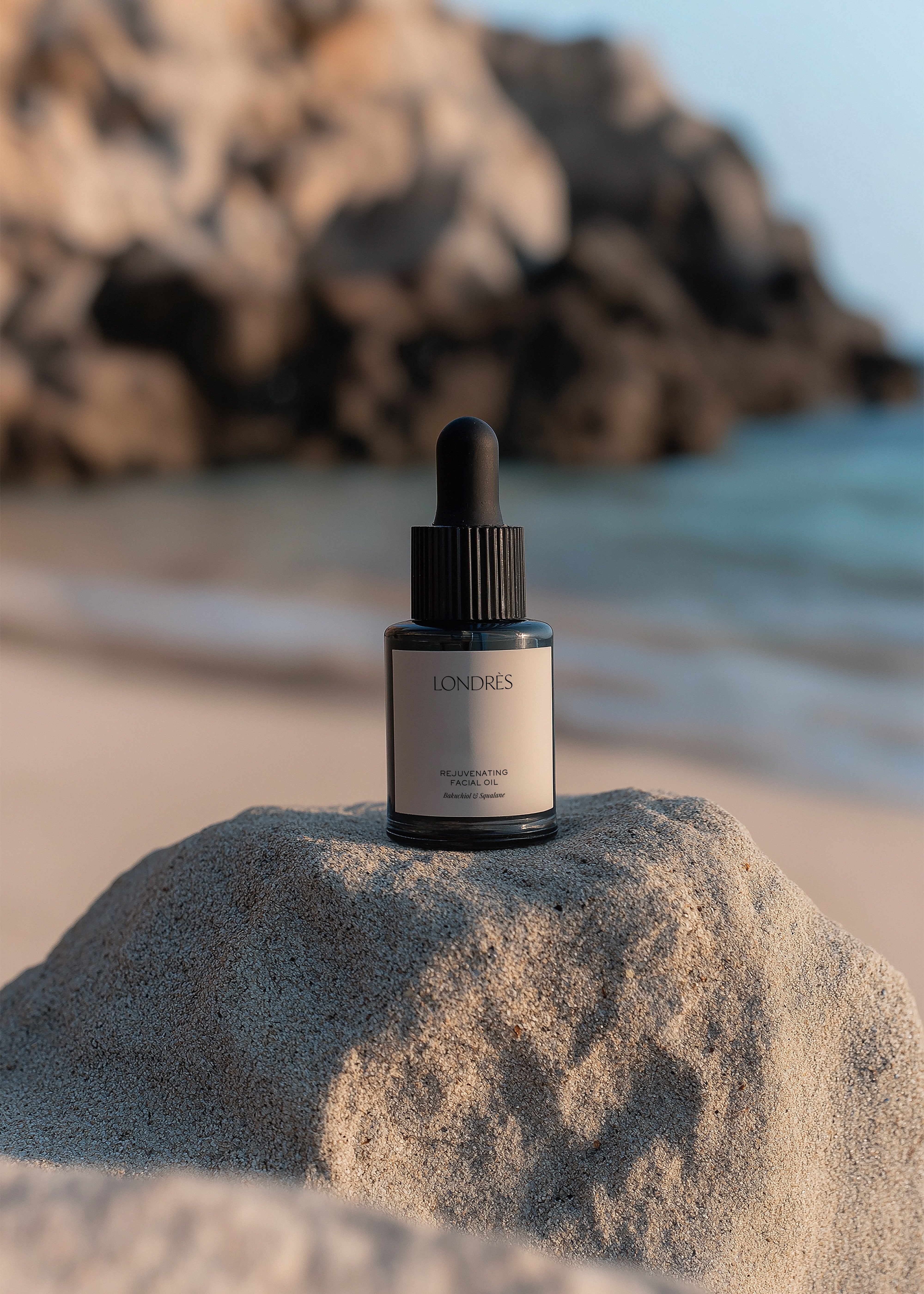 Introducing our Glass Dropper Bottle Mockup - a design inspired by the mesmerising beauty of the sea. As a part of our 'La Mer Mockup Collection', this mockup beautifully encapsulates the serene charm of the ocean. The glass dropper bottle sits on a canvas of polished rocks, bathed in the soft, warm light of a summer sunset. The calm ocean in the background paints a picture of tranquil seaside moments. With smart layers, you can add your distinct touch to the bottle label with embossing or debossing effects, allowing you to elevate your designs.