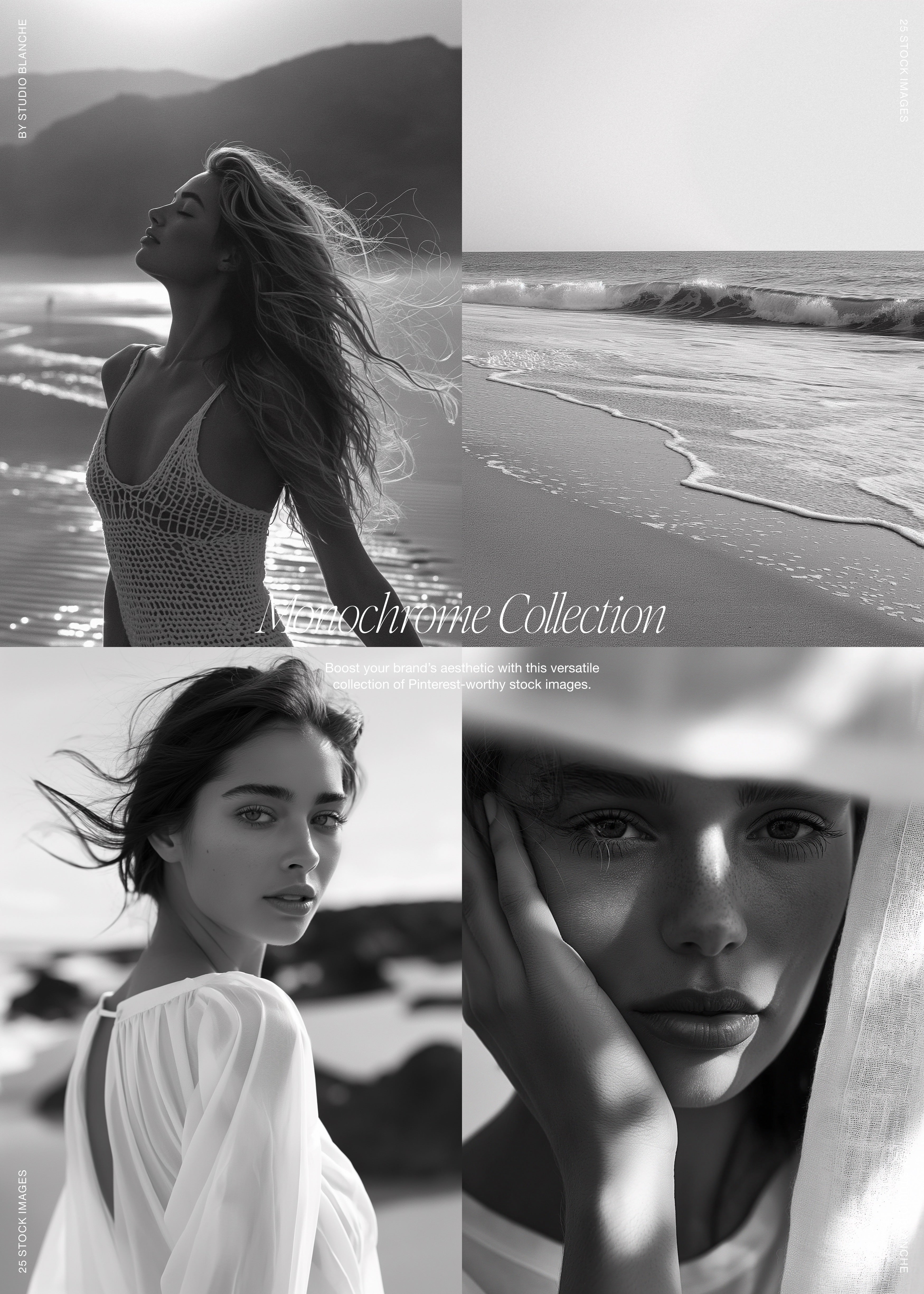 This compelling collection of black and white stock images was designed to add a timeless touch to your brand or project. The collection includes emotive portraits, captivating lifestyle imagery, and enchanting landscapes, all wrapped up in a striking monochrome palette. Each image in our collection is Pinterest-worthy, crafted to enhance your aesthetic and engage your audience. Whether you're creating social media content, or working on graphic design projects, these high-quality images are your ticket to a stylish, monochrome world.