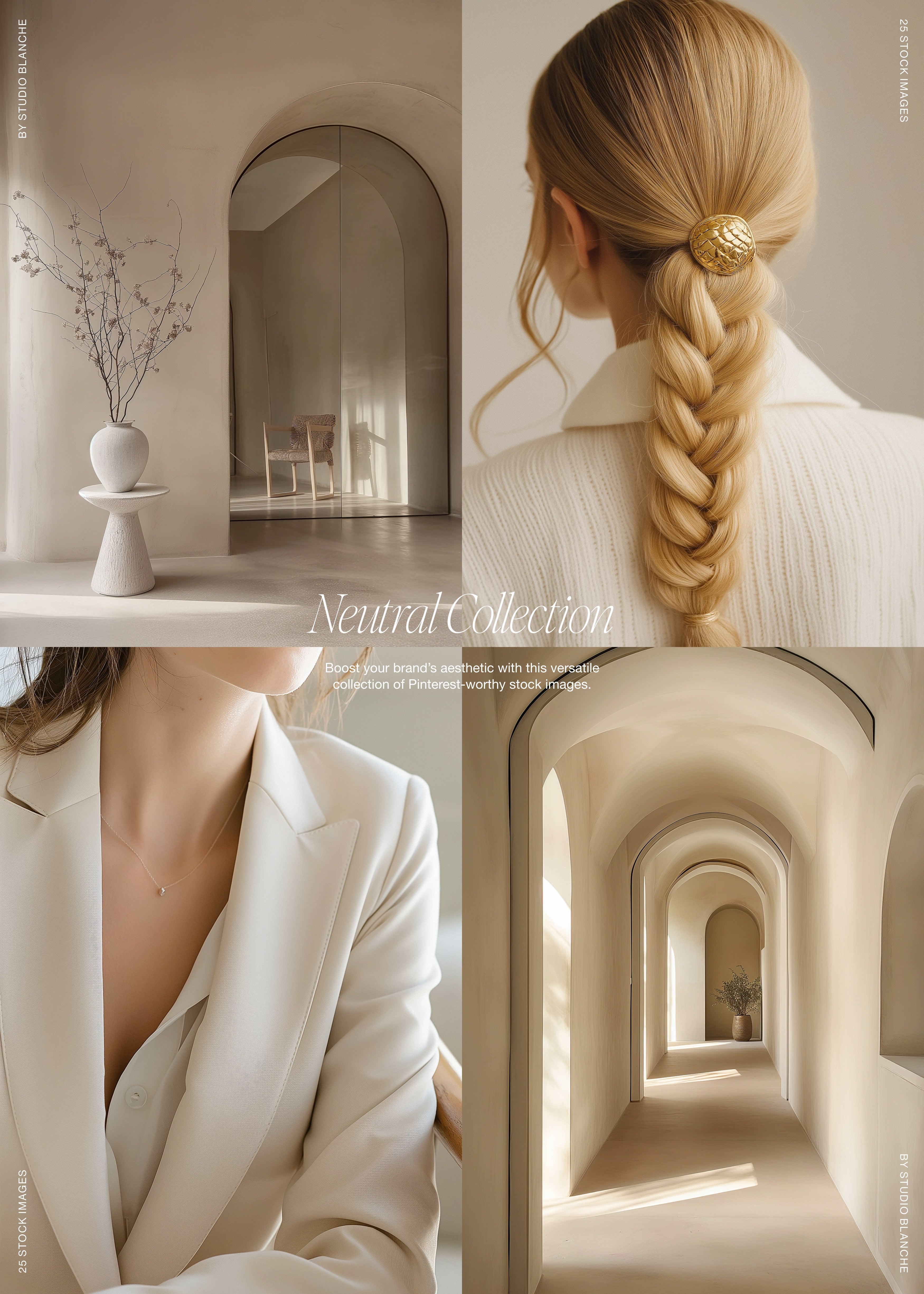 We know the struggle - the endless scrolling for the search of that perfect image and the frustration when nothing seems to match your vision or budget. That's why we've put together our unique stock image collection, just for creatives like you! Our collection comprises high-quality closeups, lifestyle shots, cosy interiors, and captivating still life photos, all in soothing neutral tones, ready to seamlessly blend with your designs. No more compromising on quality or blowing your budget on overpriced stock photos. This collection of AI-generated images promises high-quality portrait closeups with oh-so-realistic skin textures, all ready to bring your designs to life. Ready to boost your creativity and your brand's aesthetic? Your aesthetic images are waiting!