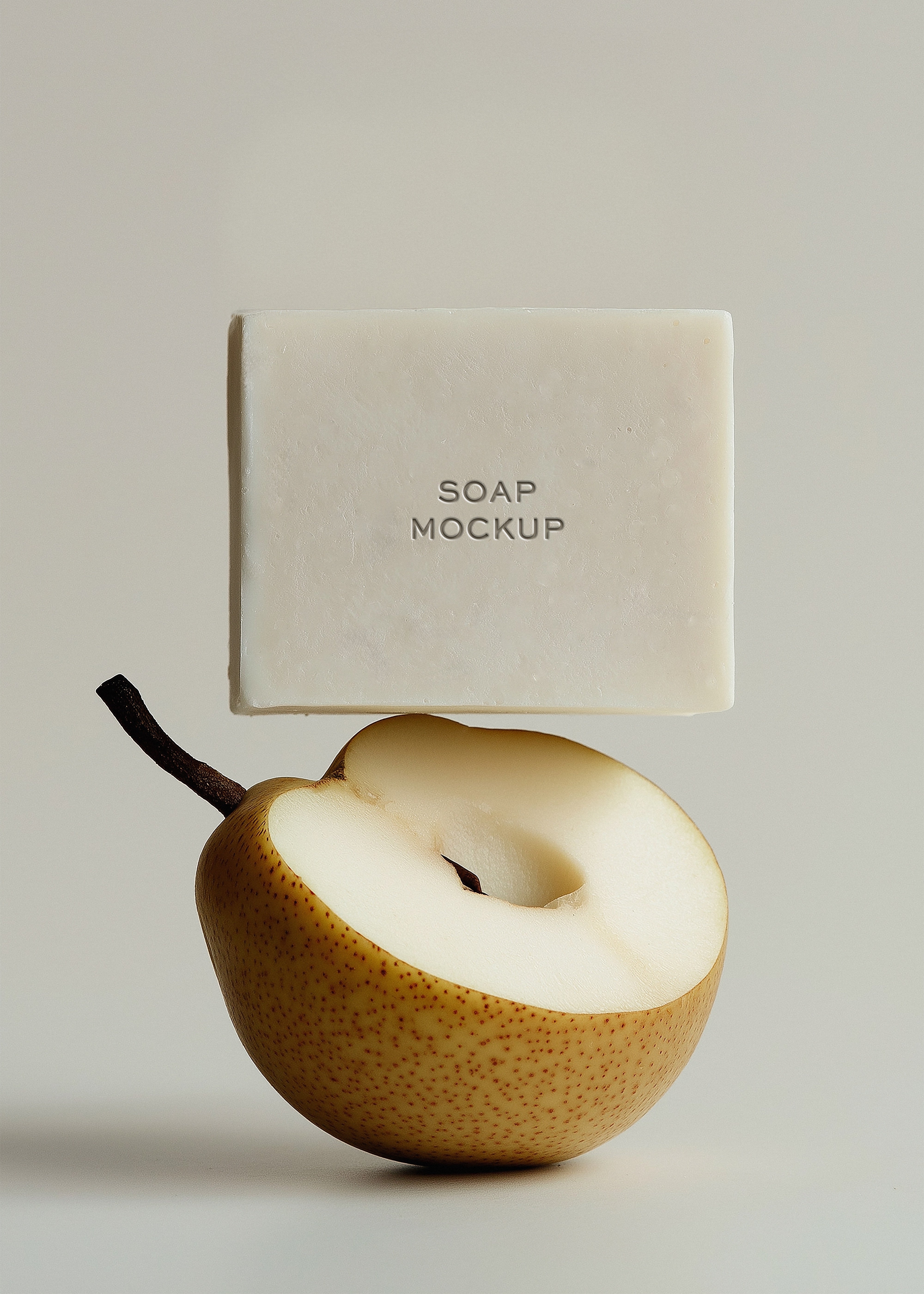 Say hello to our Stamped Soap Bar Mockup. Inspired by the minimalist aesthetic of modern product photography, this mockup is a visual symphony, capturing the delicate balance between simplicity and sophistication. The soap bar features a crisp, stamped effect, allowing your branding to take centre stage. The unexpected combination of soap and fruit adds a touch of unique aesthetic allowing your designs to stand out. It's  an ideal choice for brand and packaging designers wanting to showcase their projects. With its unique aesthetic, this mockup can effortlessly highlight the authenticity and eco-friendly ethos of the products.