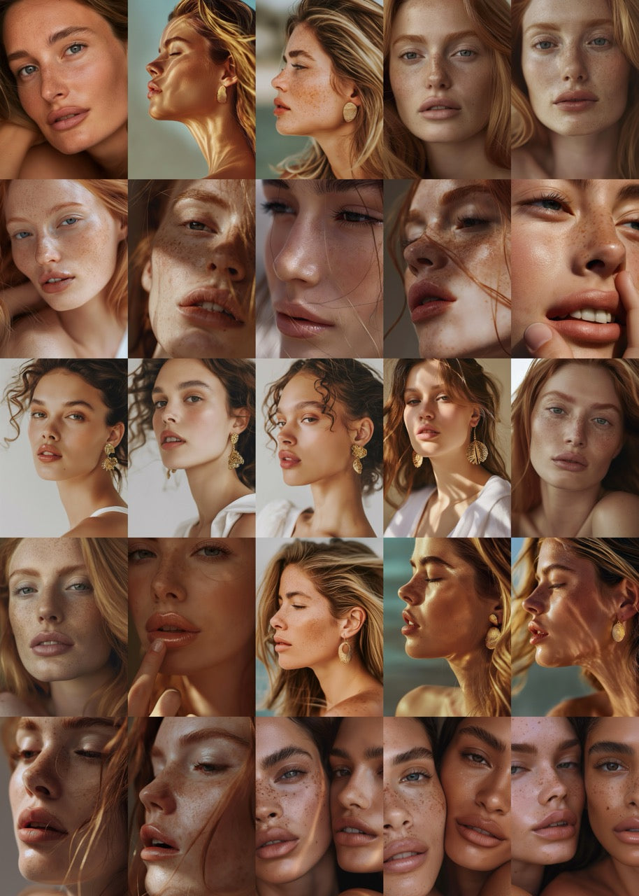 Transform your beauty brand's visual identity with our curated collection of premium portraits. Crafted to showcase realistic skin textures, natural lighting, and editorial-worthy compositions, our images rival professional photography at a fraction of the cost. Perfect for beauty brands, skincare launches, and brand designers seeking high-end visuals without the hefty price tag. Elevate your social media, website, and marketing campaigns with images that speak luxury, authenticity, and sophistication.