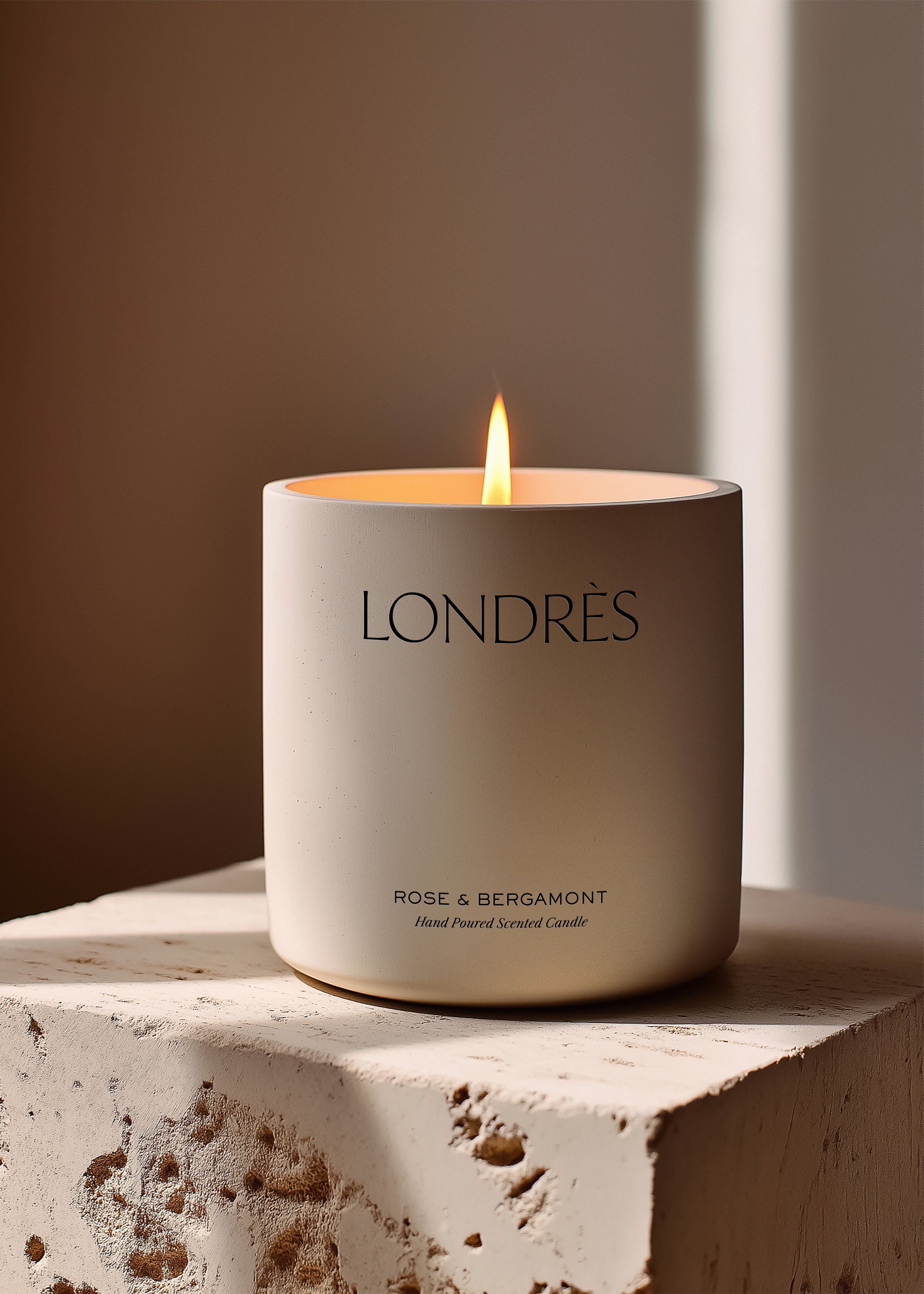 This stone-finish candle mockup showcases textural depth and organic luxury, perfect for brands seeking a distinctively earthy aesthetic. The substantial matte vessel design features natural tonal variations that communicate artisanal character and visual interest to your customers. The weighty appearance conveys premium quality and lasting value, positioning your candle line at a higher price point. This mockup is ideal for luxury brands wanting to emphasise craftsmanship, natural materials, and sustainable beauty in their product presentations and marketing materials.