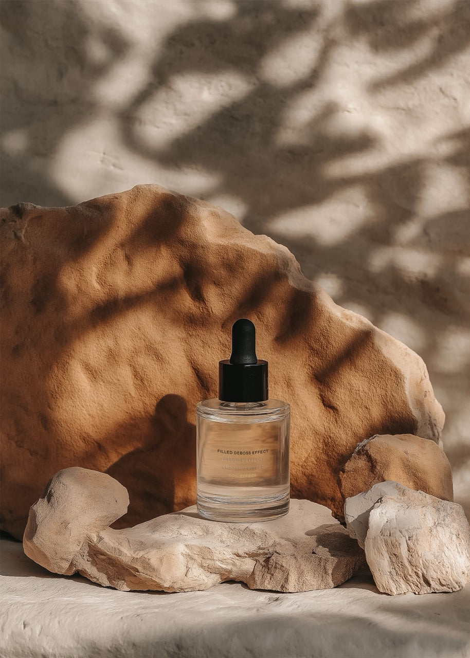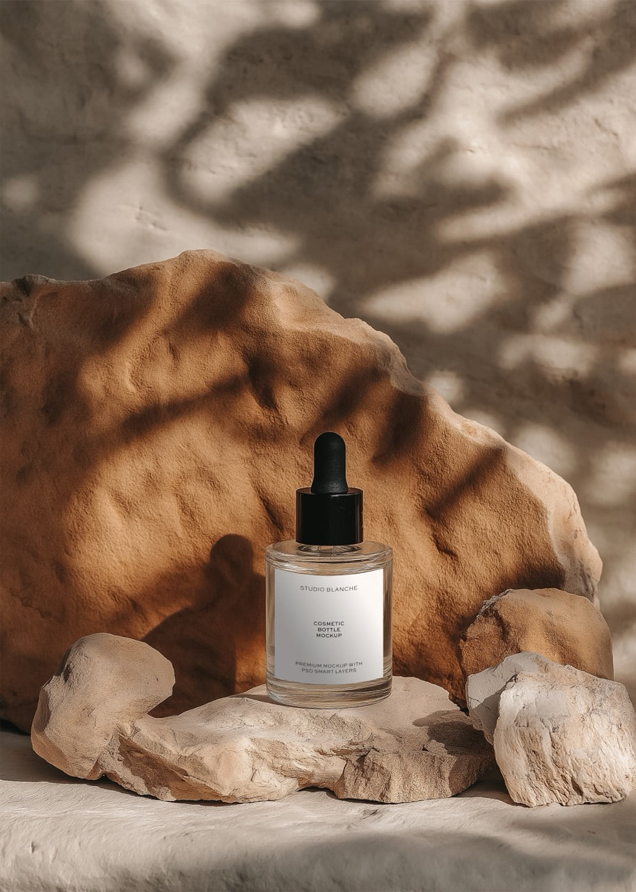 Distinguish your luxury brand with this sophisticated  glass dropper bottle mockup that elevates standard packaging into premium territory. The elegant finish creates understated luxury whilst maintaining transparency - the perfect balance that premium skincare brands leverage to command higher price points. Showcases your label against uniquely textured surface that catches light beautifully. Ideal for high-end facial oils, luxury serums, and prestige beauty treatments.