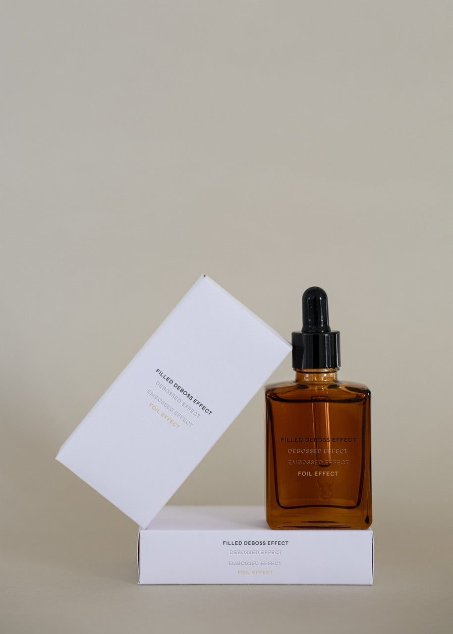 1 PSD file with smart layers including four print effects: filled deboss, blind deboss, blind emboss and gold foil.