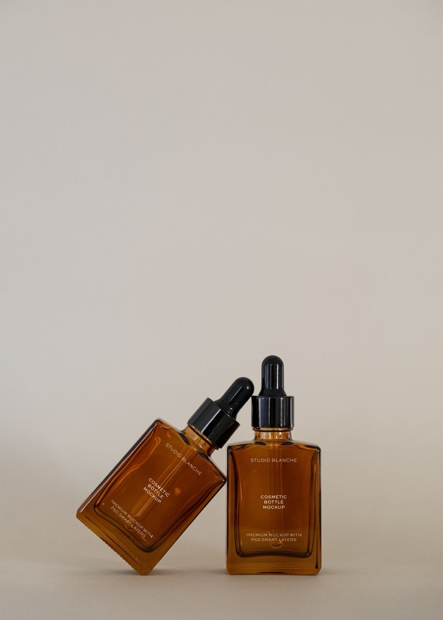 Simplify your product presentation whilst maximising impact with this elegant dual amber glass dropper bottle mockup, photographed against a flawless neutral backdrop that ensures your branding takes priority. The matching amber bottles create visual harmony and suggest a curated collection, whilst the protective glass communicates pharmaceutical-grade quality that skincare consumers value. This versatile mockup enables you to create professional marketing assets, website imagery, and social content quickly and affordably.