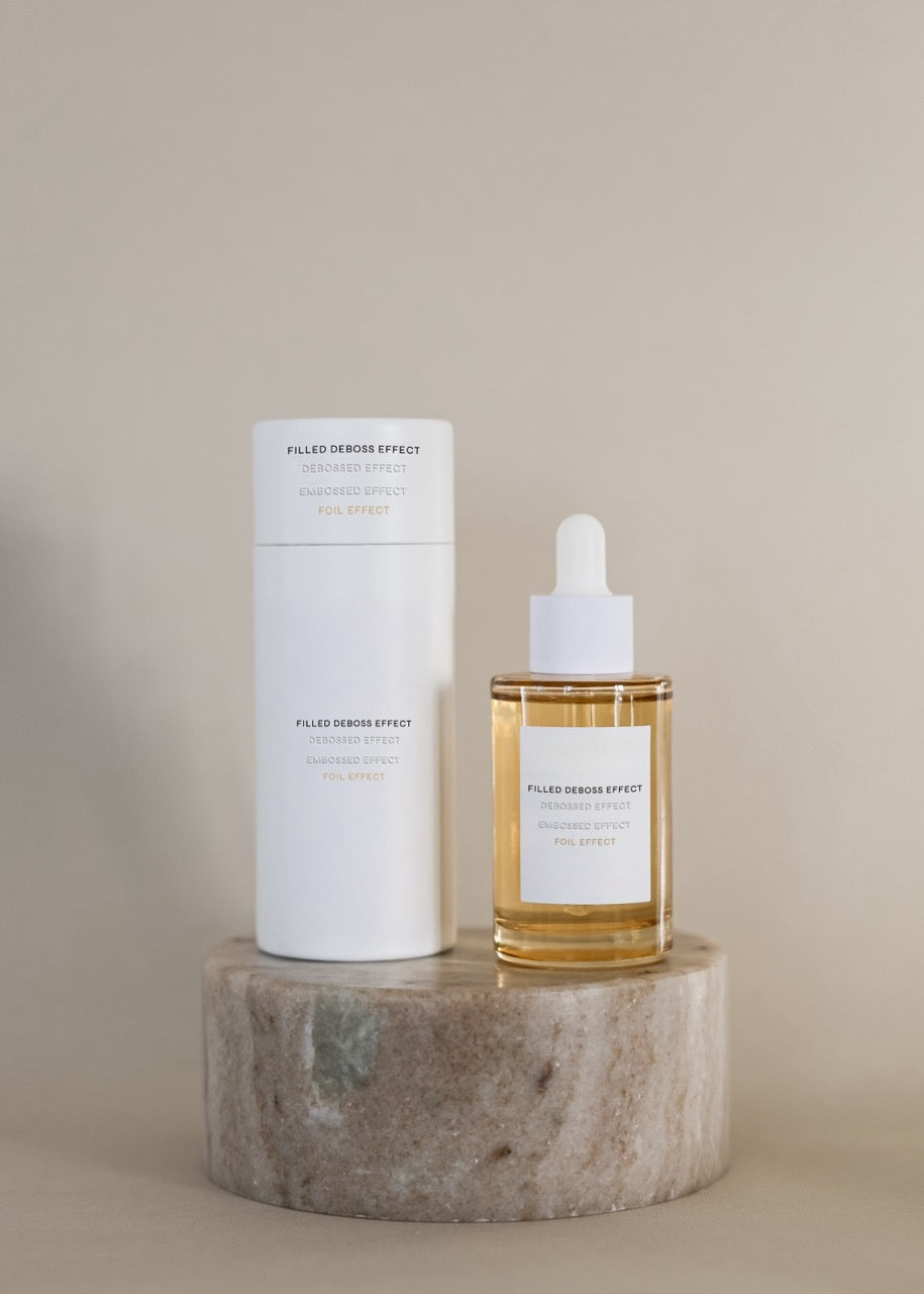 1 PSD file with smart layers including four print effects: filled deboss, blind deboss, blind emboss and gold foil.