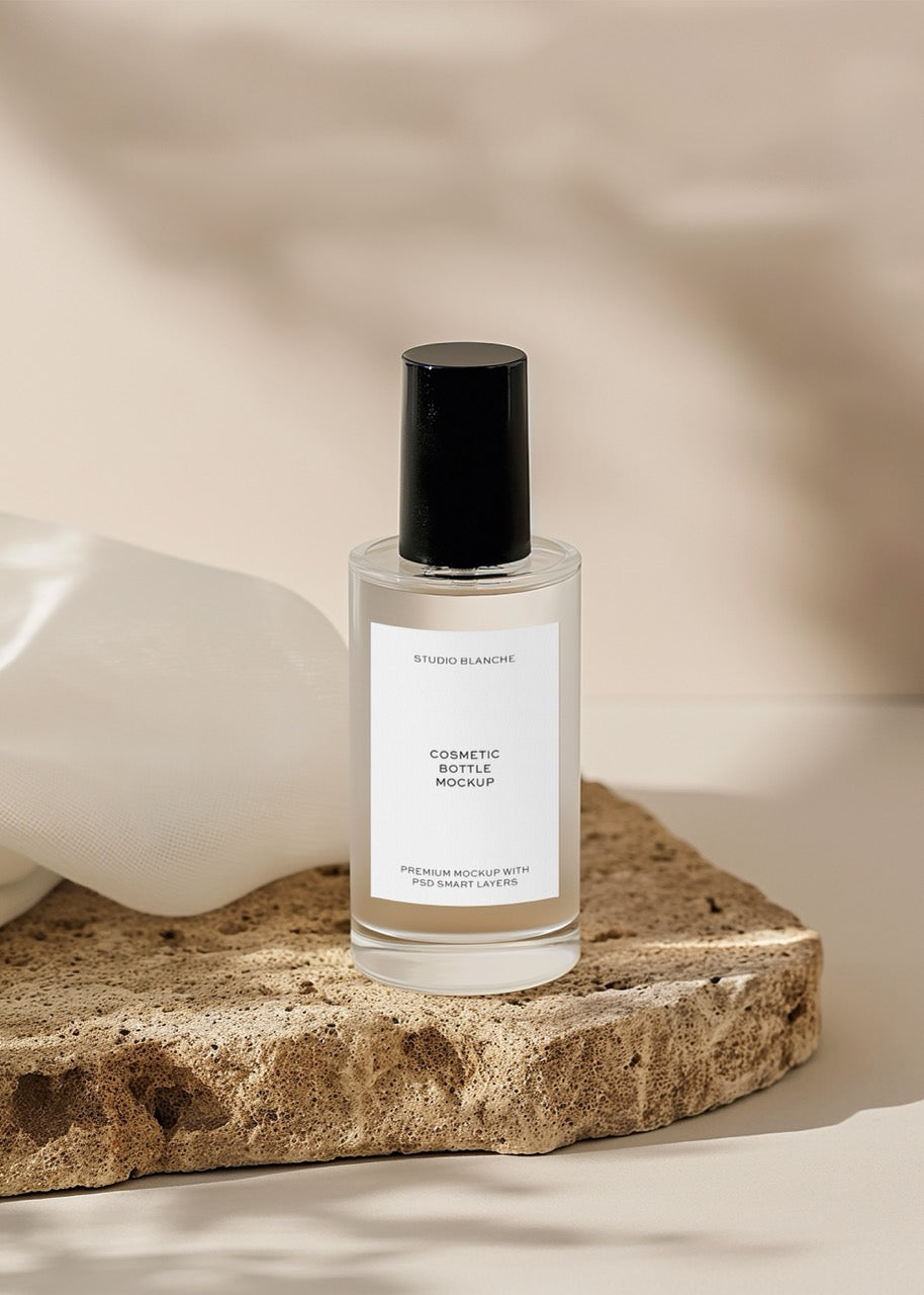Present your cosmetic creations in the best light with our Minimal Glass Bottle Mockup. The clean lines and transparent glass offer a versatile canvas, ideal for a wide range of beauty products. This mockup’s contemporary aesthetic ensures your branding stands out, while its easy-to-edit features make customisation effortless. Add polish to your portfolio and captivate your audience with a mockup that embodies modern elegance.