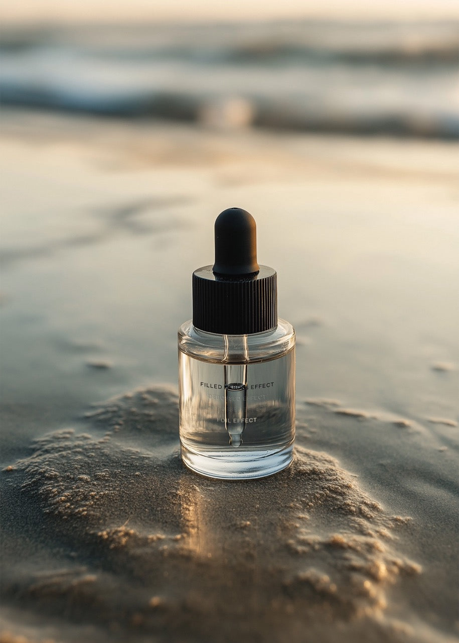 Showcase your innovative skincare with the La Mer Collection Dropper Bottle Mockup - where contemporary design meets beachside bliss. This photorealistic mockup features your dropper bottle nestled in soft sand, highlighting product details while evoking feelings of freshness and relaxation. Perfect for forward-thinking brands, it’s the ultimate way to communicate purity, potency, and a connection to the natural world. Make your brand unforgettable with a backdrop that speaks volumes.
