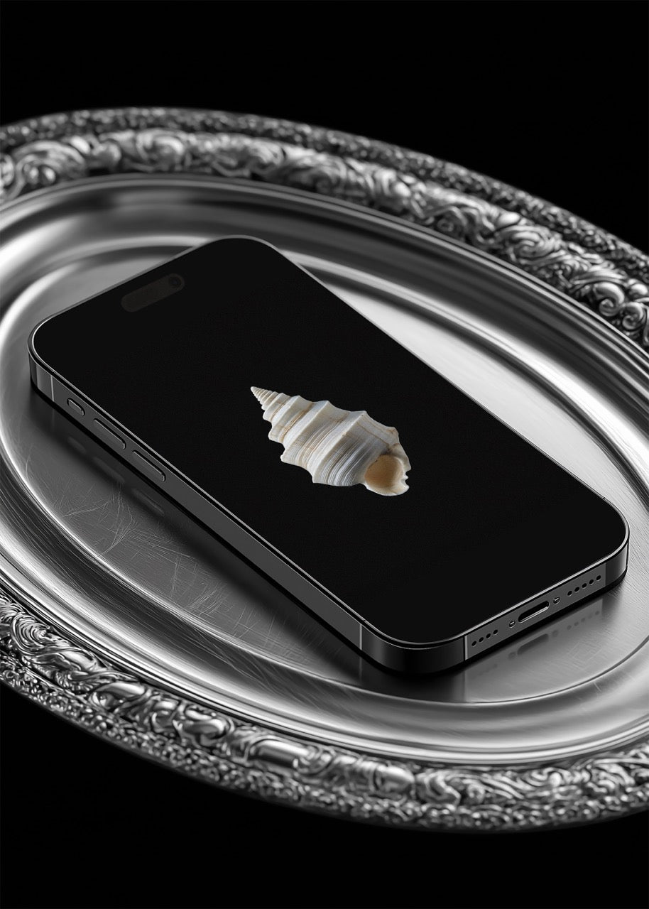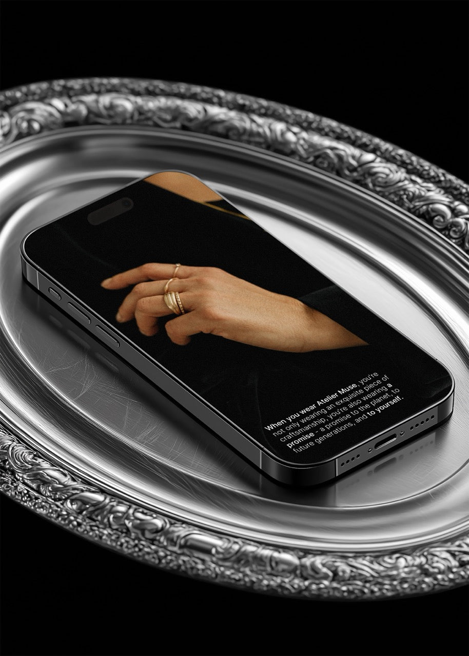 Present your iPhone design like a precious objet d'art with this Couverts Collection mockup, featuring a museum-quality vintage serving tray whose intricate details create an instant narrative of heritage and sophistication. This carefully styled scene positions your work within a context of refinement, making it irresistible to clients who appreciate craftsmanship. Perfect for showcasing luxury brand identities, editorial websites, and premium creative work that deserves a presentation asset reflecting an elevated aesthetic that attracts high-end clientele.