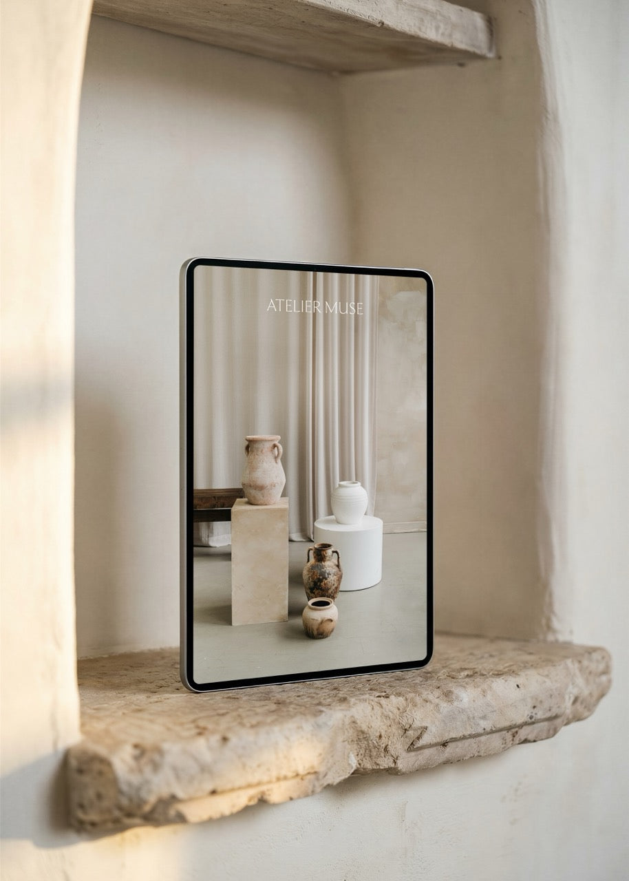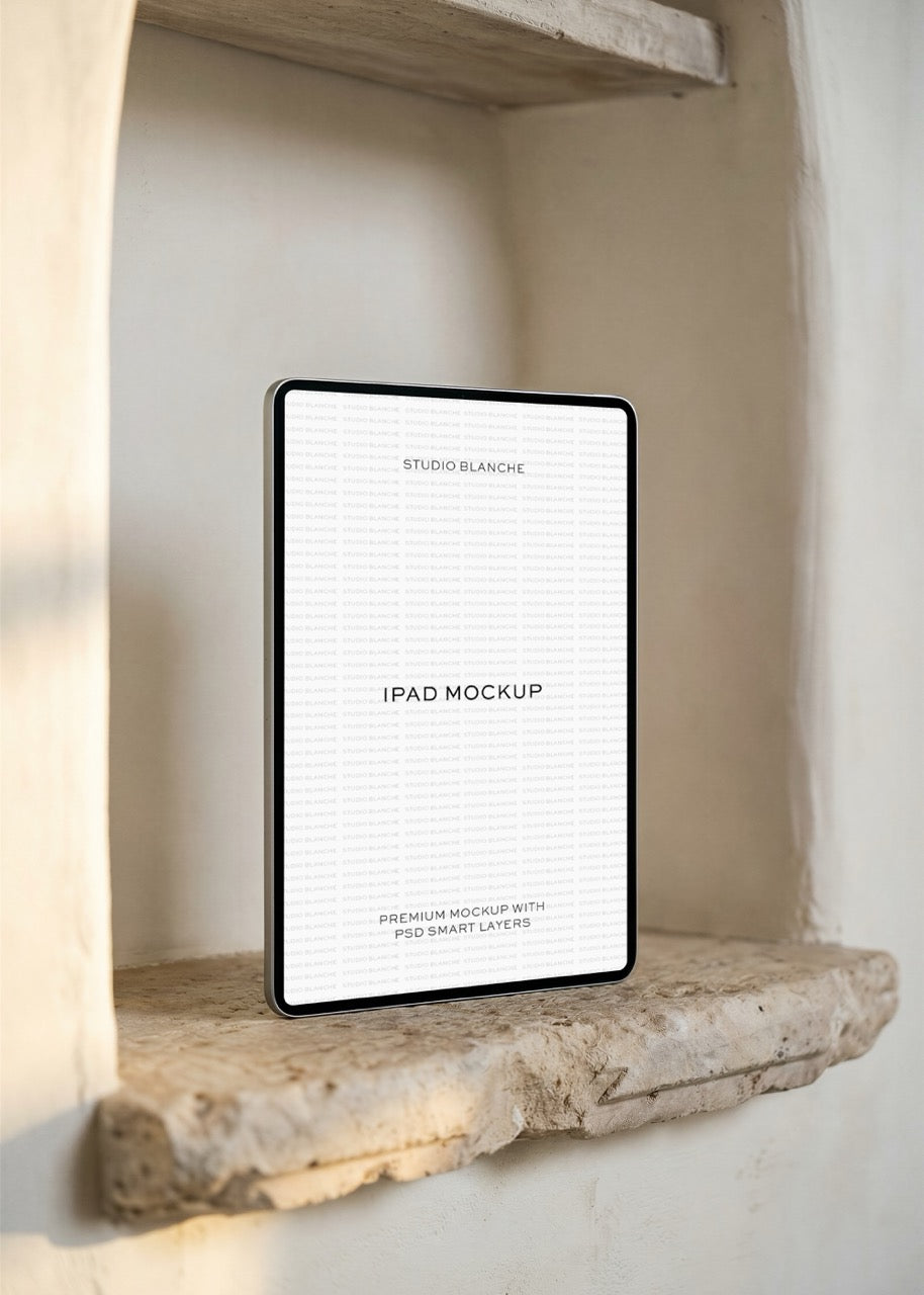 Bathed in soft, golden light, this iPad mockup creates a warm, inviting canvas for showcasing your app design or digital product. The aesthetic, lifestyle-inspired setting lends an instant sense of calm sophistication that resonates with creative and wellness brands alike. A beautifully understated digital asset designed to make your screen designs feel polished and effortlessly real.