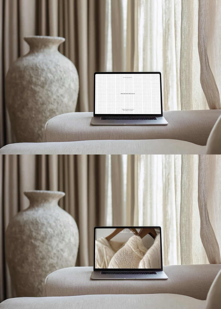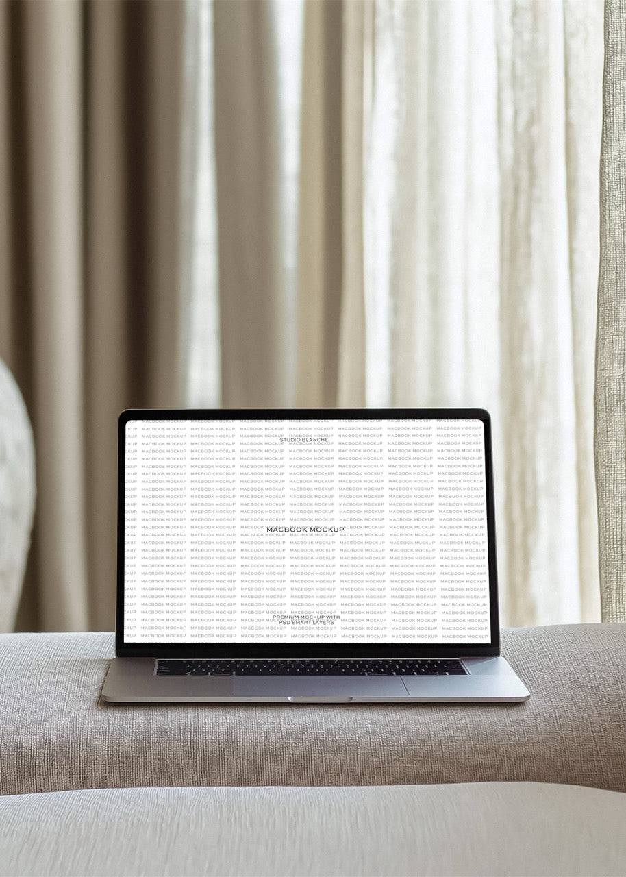 Boost your client appeal with a MacBook mockup that places your designs in a beautifully relaxed lounge environment. With a high-resolution screen and sleek, minimalist frame, this mockup is designed to elevate any visual project. The soft, homely backdrop creates an immediate sense of ease, making your digital work feel accessible and relatable. This mockup is perfect for creatives looking to bridge the gap between cutting-edge design and everyday usability.