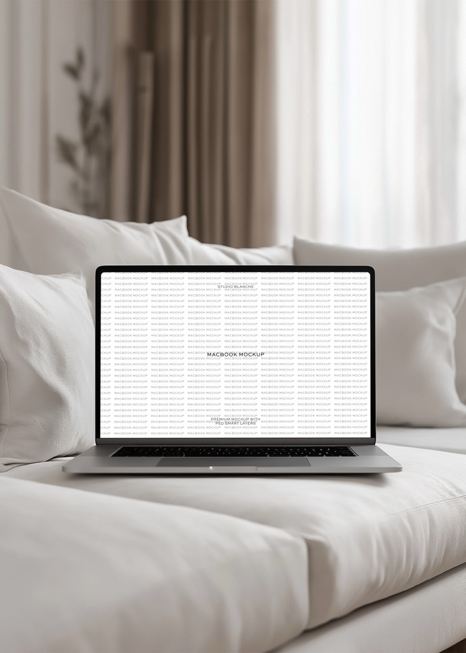 Present your brand’s creativity with confidence using this MacBook mockup with a neutral backdrop. The natural lighting highlights your designs, ensuring they look polished and professional. Whether you’re launching a new brand, presenting a website design, or creating marketing materials, this mockup offers a sleek, modern canvas that aligns with your brand values. It’s the perfect choice for creatives who demand quality and consistency.