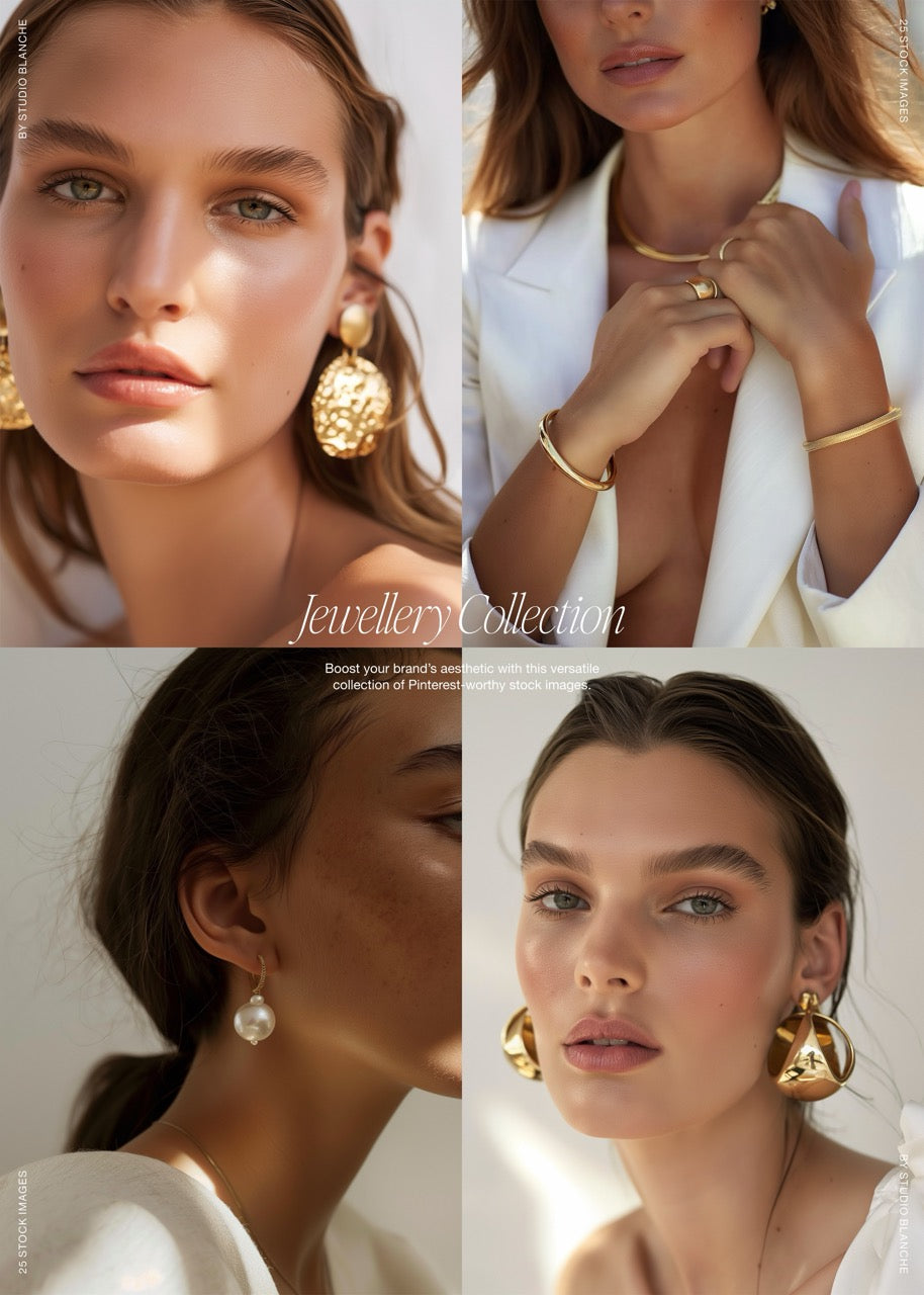 Say hello to this jewellery stock image collection – curated of stunning close-up portraits featuring women wearing beautiful jewellery. Every image in this collection is designed to breathe life into your creative projects and make your designs stand out. The images include a diverse range of women and jewellery styles, from timeless elegance to contemporary chic. Whether you're showcasing a luxurious jewellery brand or creating a design for a modern boutique, our collection offers the versatility to meet your project's needs. This collection offers unique images that you won't find in the standard stock libraries. Our images are carefully curated to ensure they stand out from the crowd, elevating your designs with a unique visual appeal.