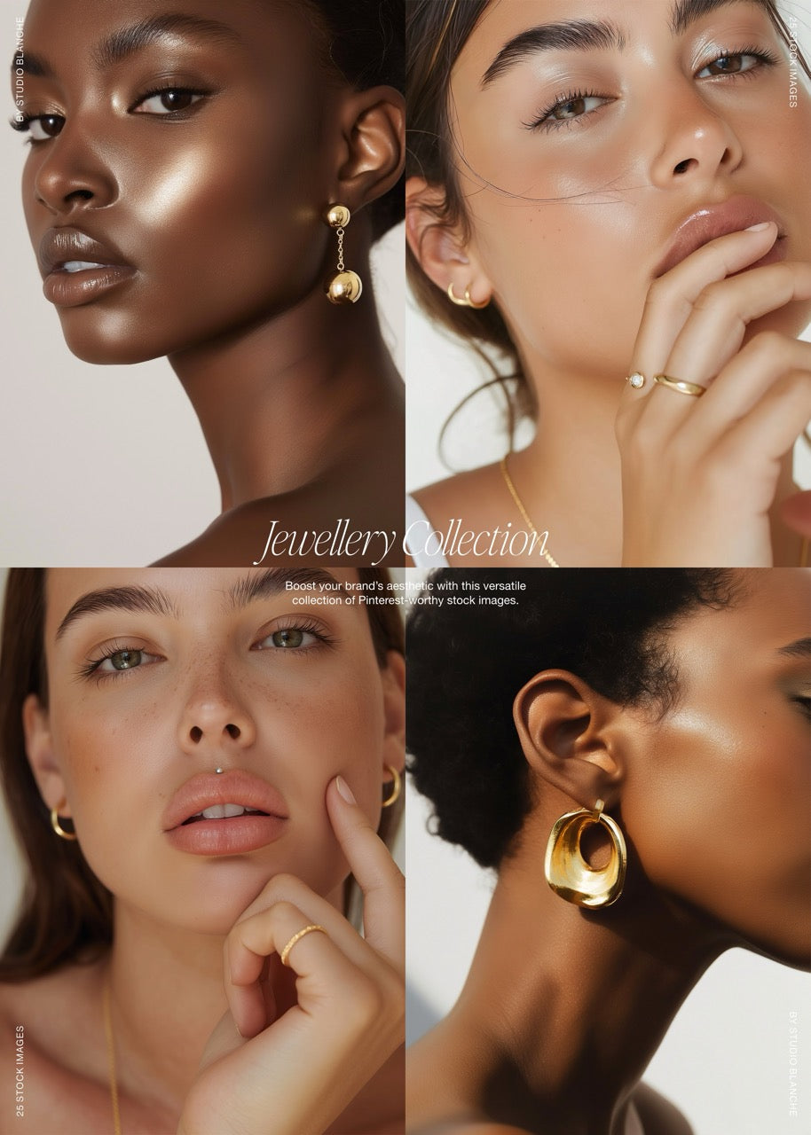 Say hello to this jewellery stock image collection – curated of stunning close-up portraits featuring women wearing beautiful jewellery. Every image in this collection is designed to breathe life into your creative projects and make your designs stand out. The images include a diverse range of women and jewellery styles, from timeless elegance to contemporary chic. Whether you're showcasing a luxurious jewellery brand or creating a design for a modern boutique, our collection offers the versatility to meet your project's needs. This collection offers unique images that you won't find in the standard stock libraries. Our images are carefully curated to ensure they stand out from the crowd, elevating your designs with a unique visual appeal.