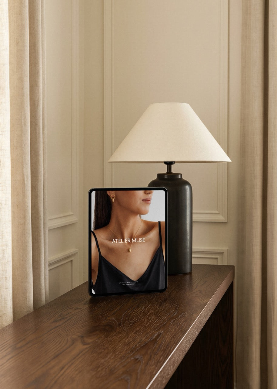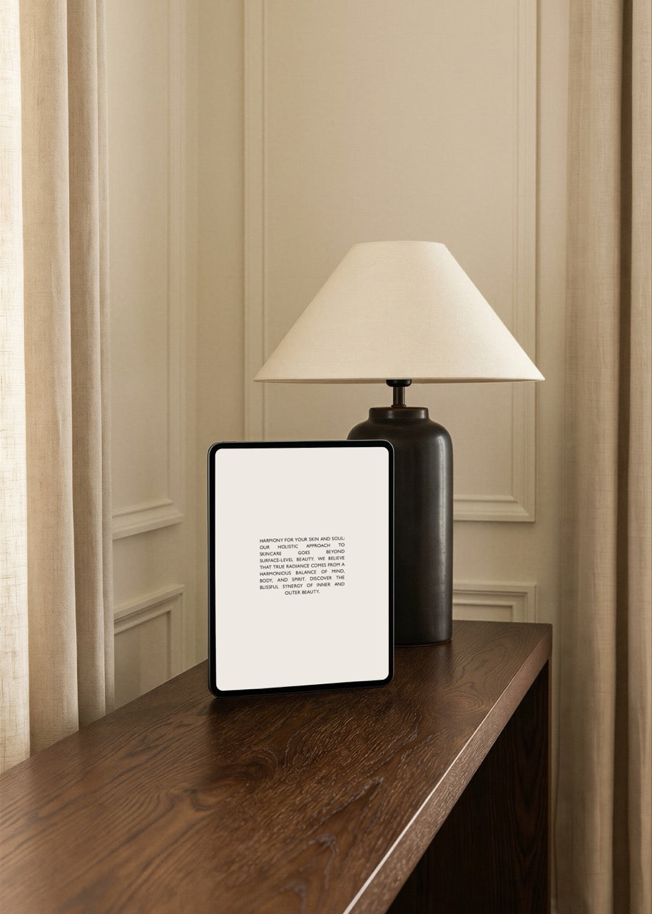 A workspace essential, presented with intention. This iPad mockup captures the warm, considered aesthetic of Le Bureau - soft lighting, rich brown tones, and the quiet elegance of a well-appointed desk. Perfect for showcasing apps, designs, or digital work in a setting that feels both professional and beautifully tactile.