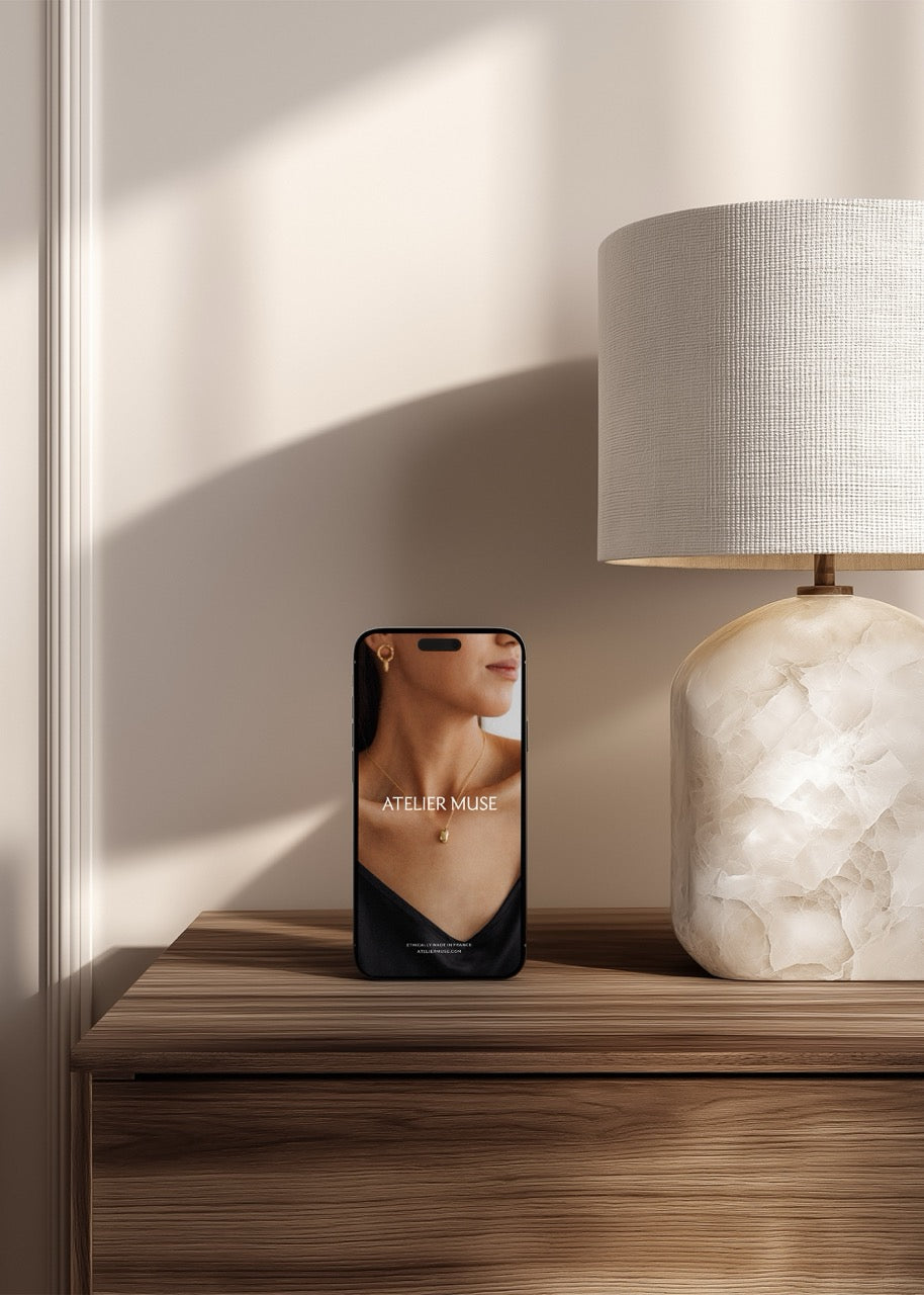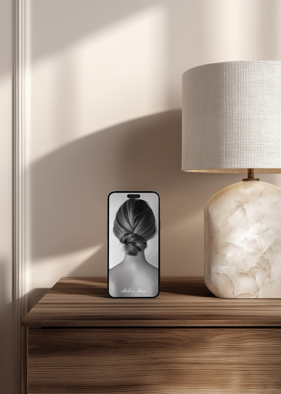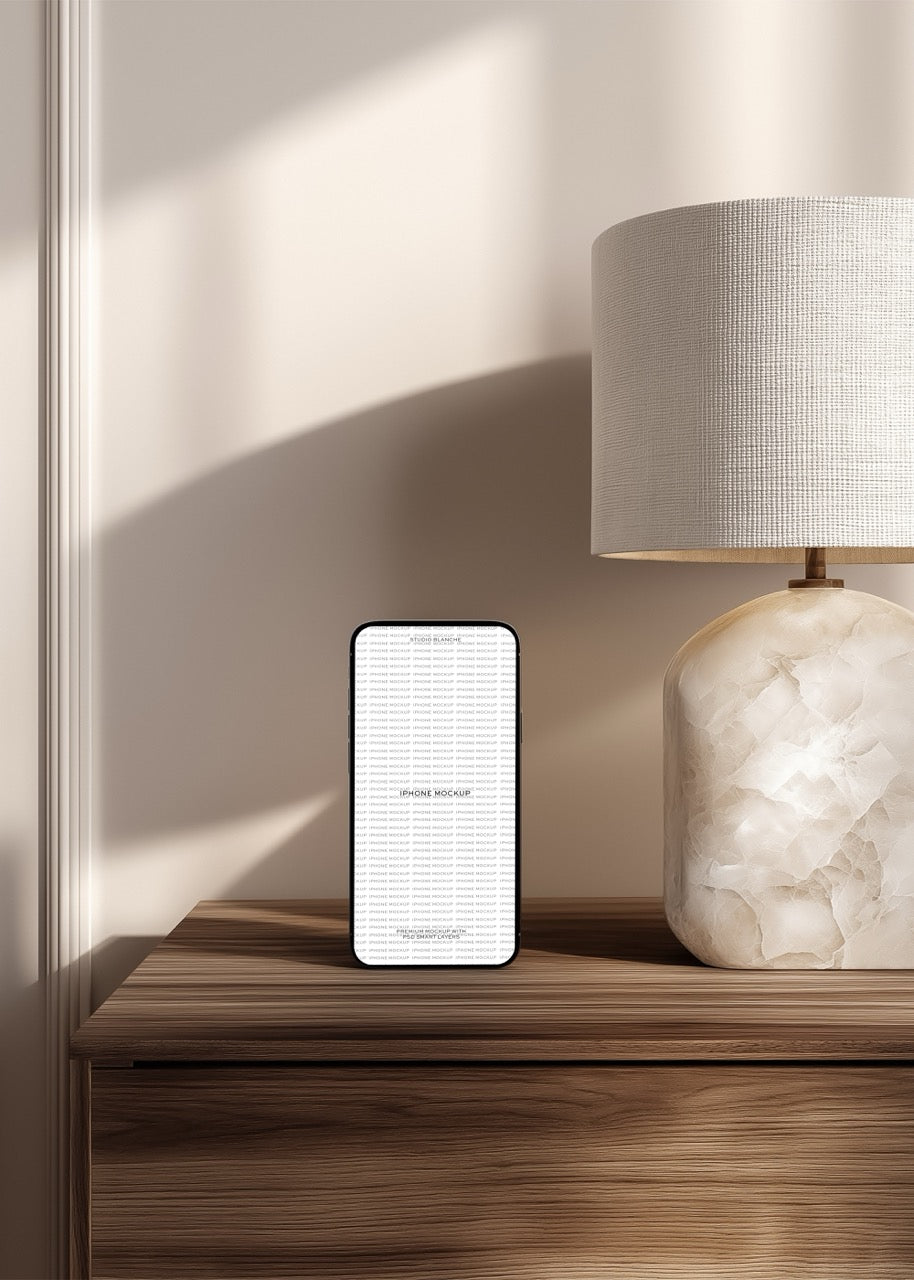 Present your mobile designs, apps, or social media content with this sleek iPhone mockup positioned within a contemporary office setting that whispers understated luxury. The refined desk styling and soft lighting create an aspirational context perfect for showcasing work to premium clients. Your designs deserve this level of presentation polish.