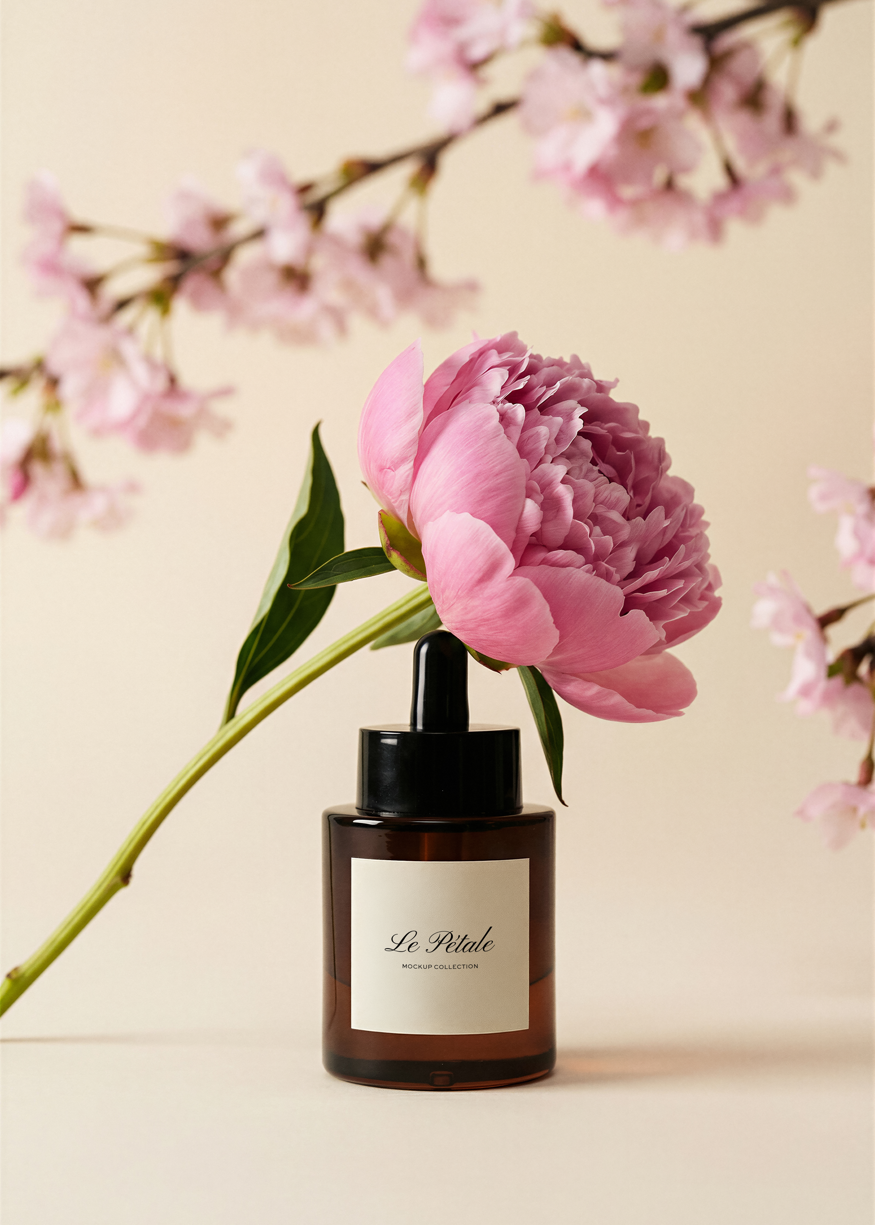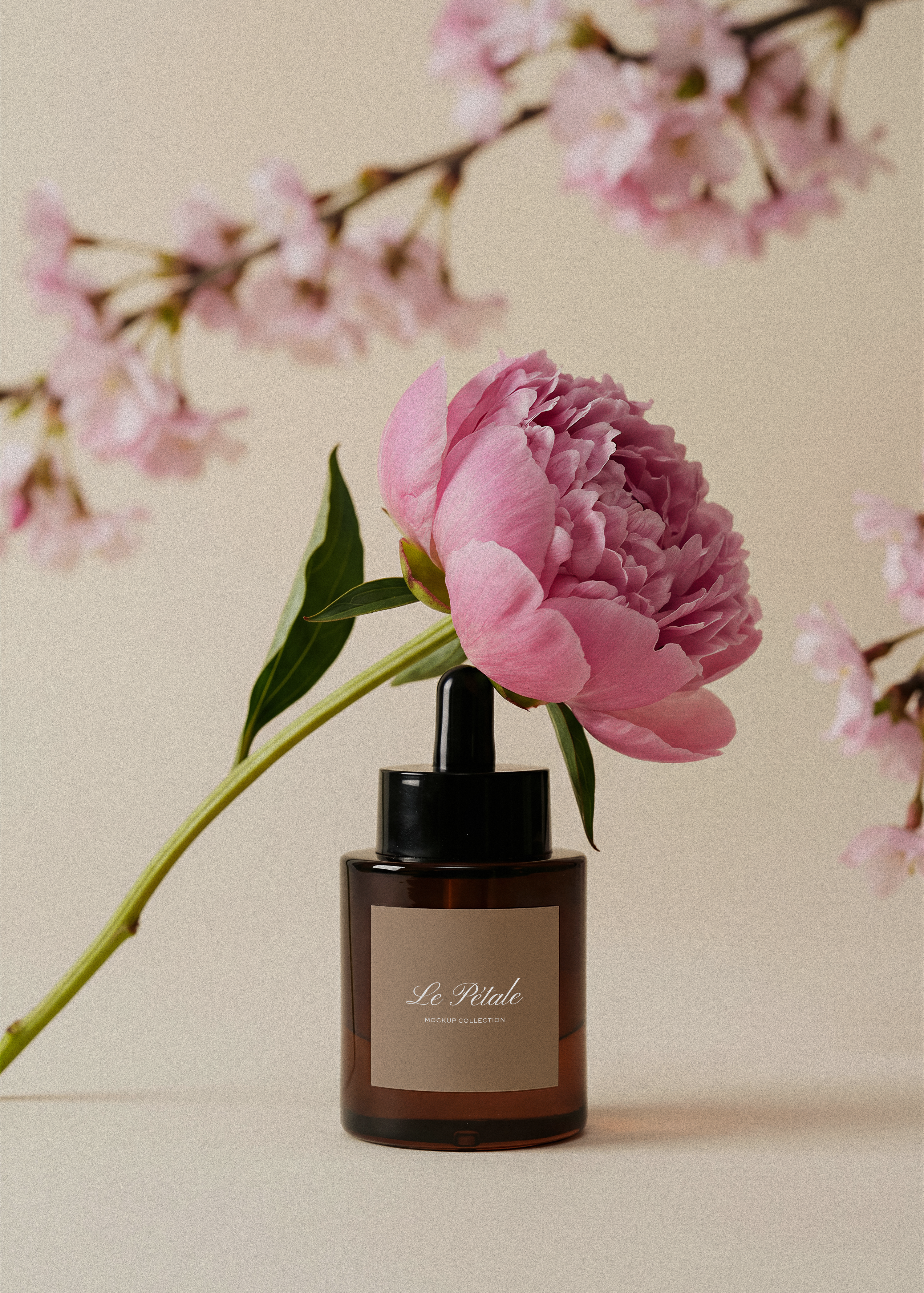 This elegantly styled dropper bottle mockup captures the essence of botanical skincare, lending instant credibility and visual allure to your product range.