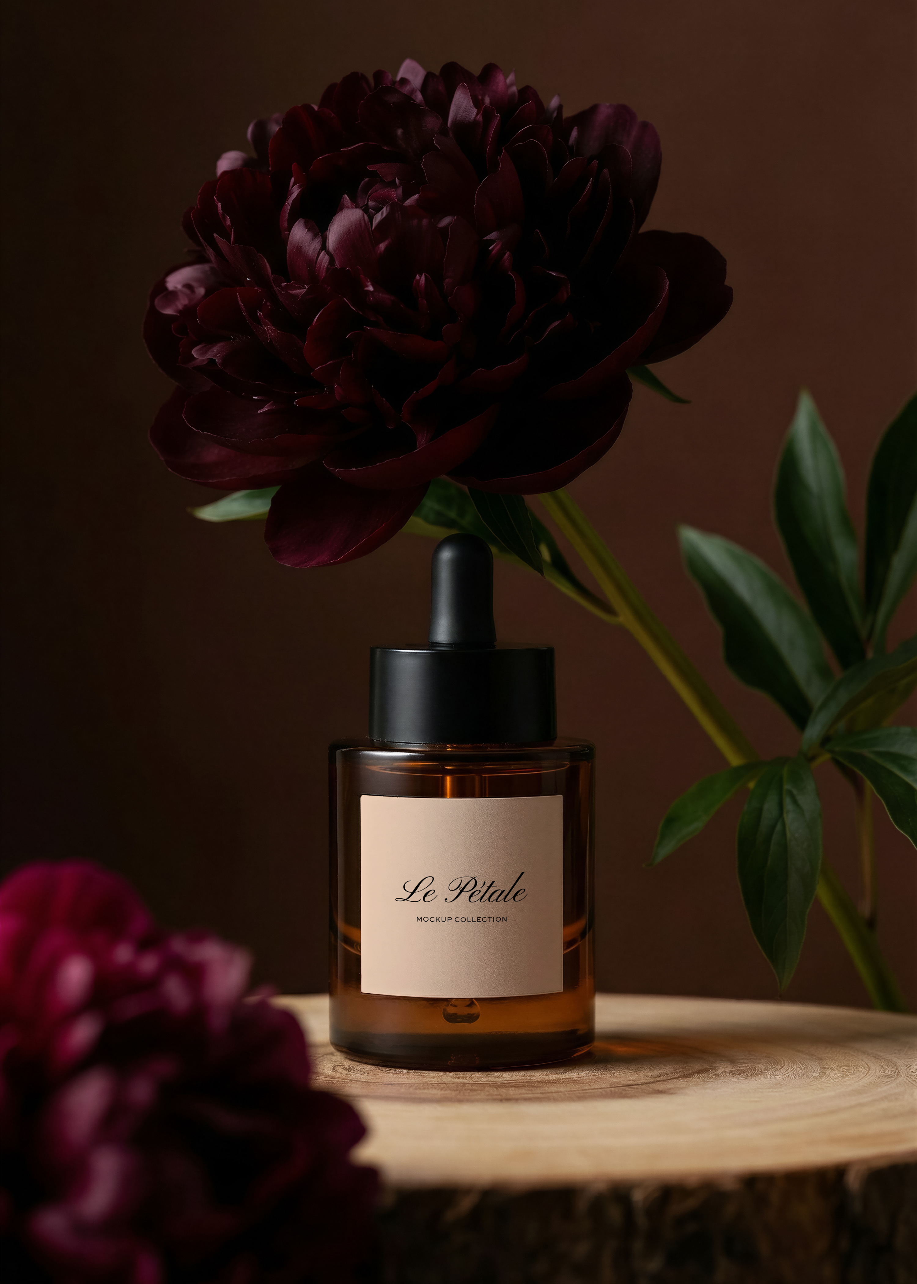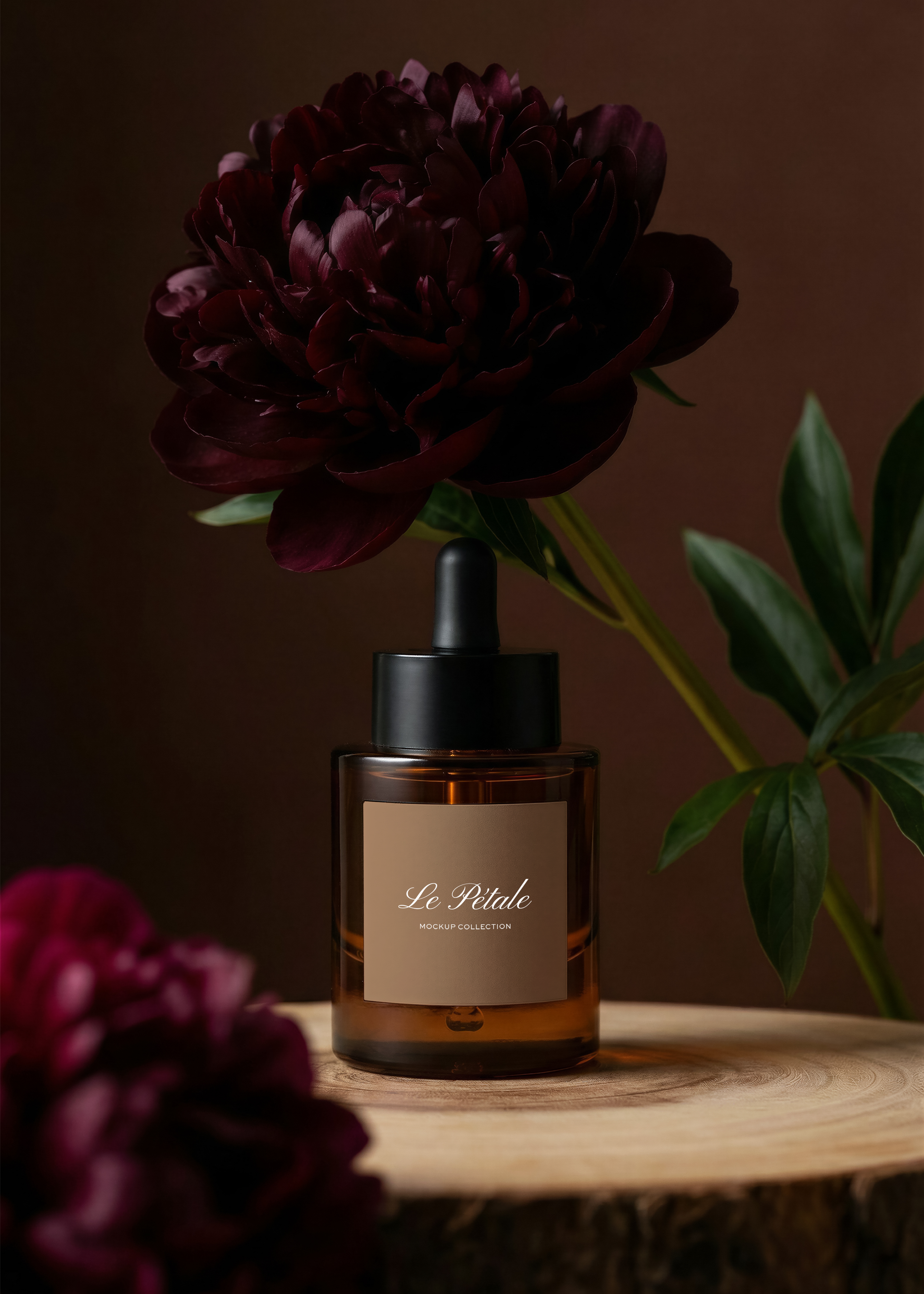 Perfect for apothecary-inspired or luxury skincare brands, this dropper bottle mockup pairs a minimal silhouette with a romantically styled setting.