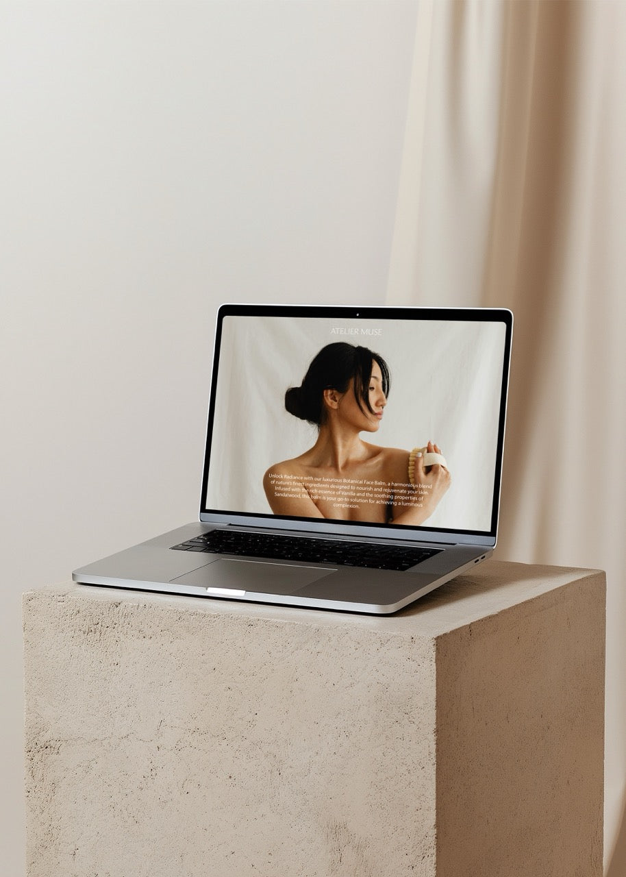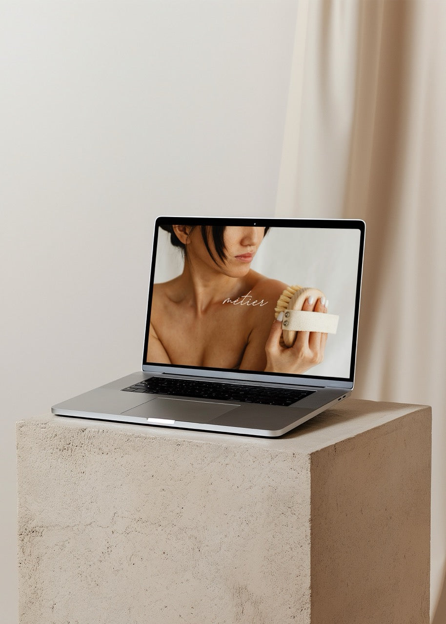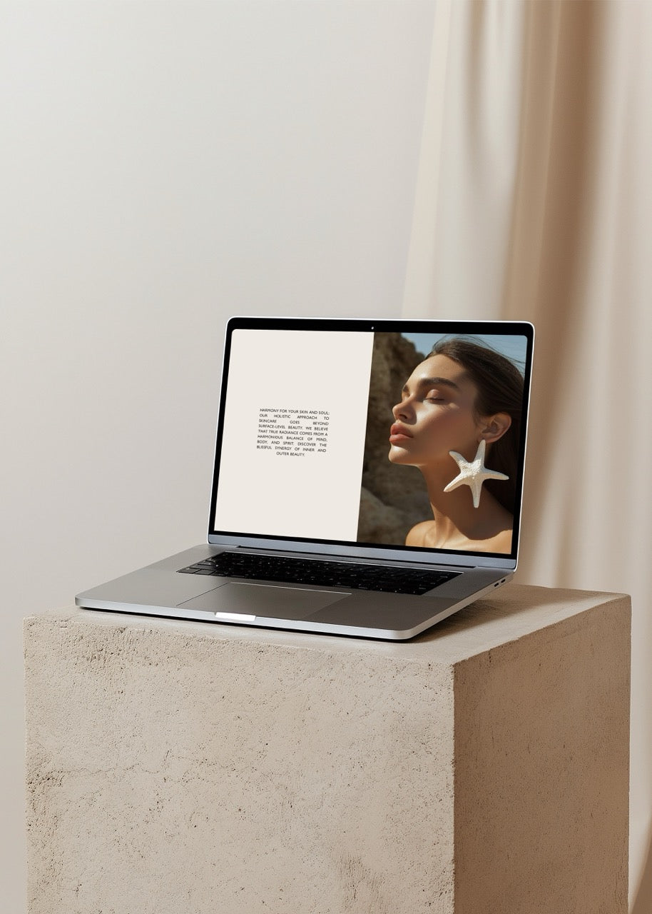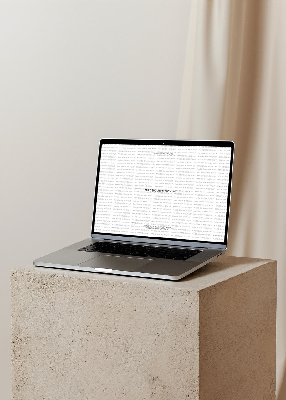 Showcase your designs with our chic Modern MacBook Mockup. This MacBook display setup is designed with a neutral aesthetic in mind, making it the ideal backdrop for your digital artwork or website design. Inspired by minimalist principles, this mockup will allow your design to take centre stage, capturing your audience's attention with its subtle yet impactful presentation. Set against a bright and airy interior backdrop, the MacBook is placed on a travertine pedestal exuding an aura of sophistication.