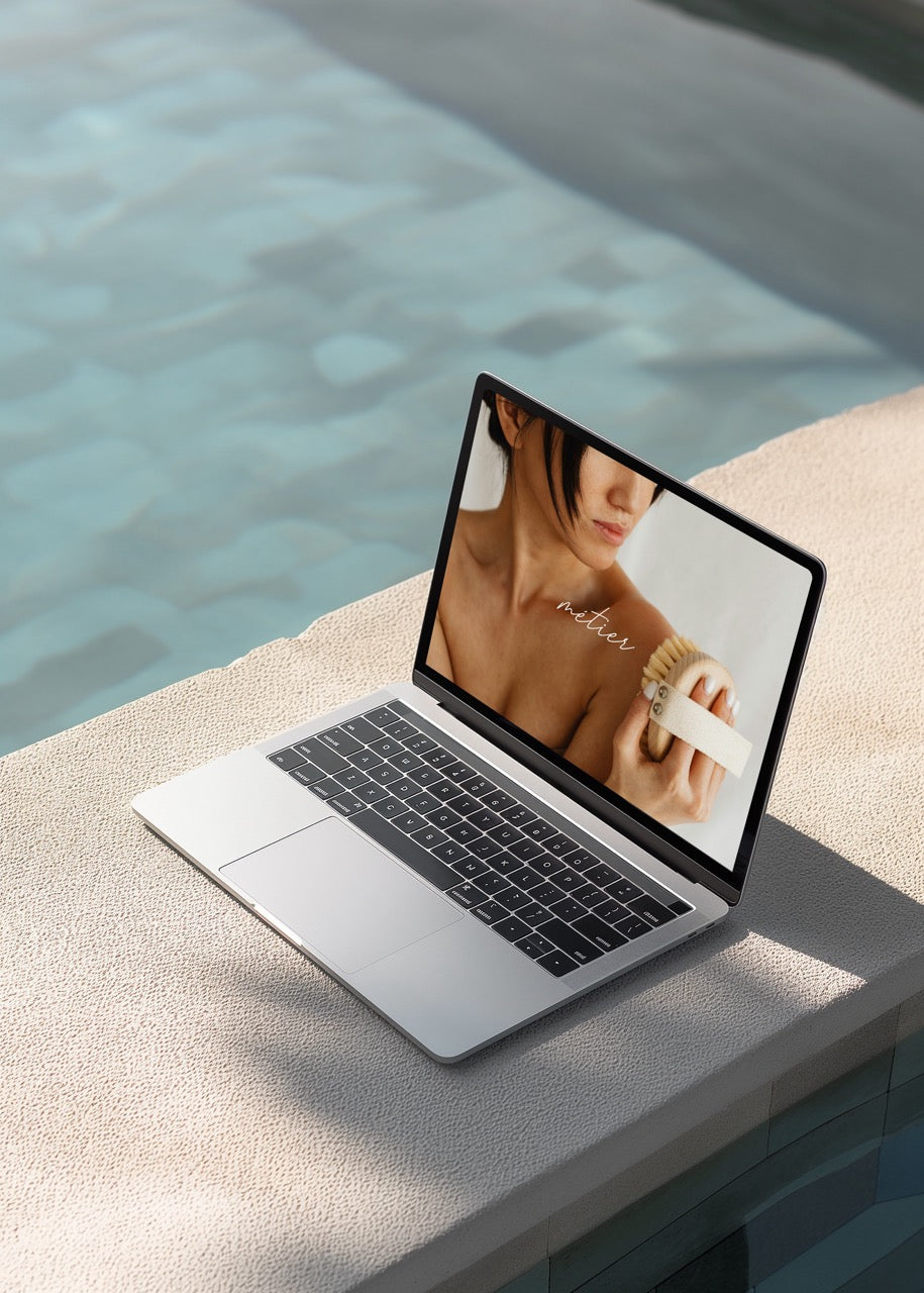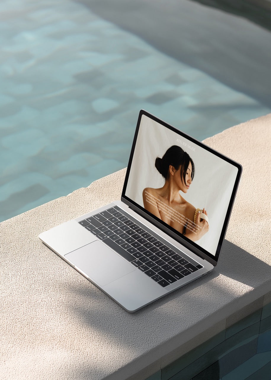 Showcase your designs with our chic Modern MacBook Mockup. This MacBook display setup is designed with a neutral aesthetic in mind, making it the ideal backdrop for your digital artwork or website design. Inspired by minimalist principles, this mockup will allow your design to take centre stage, capturing your audience's attention with its subtle yet impactful presentation.