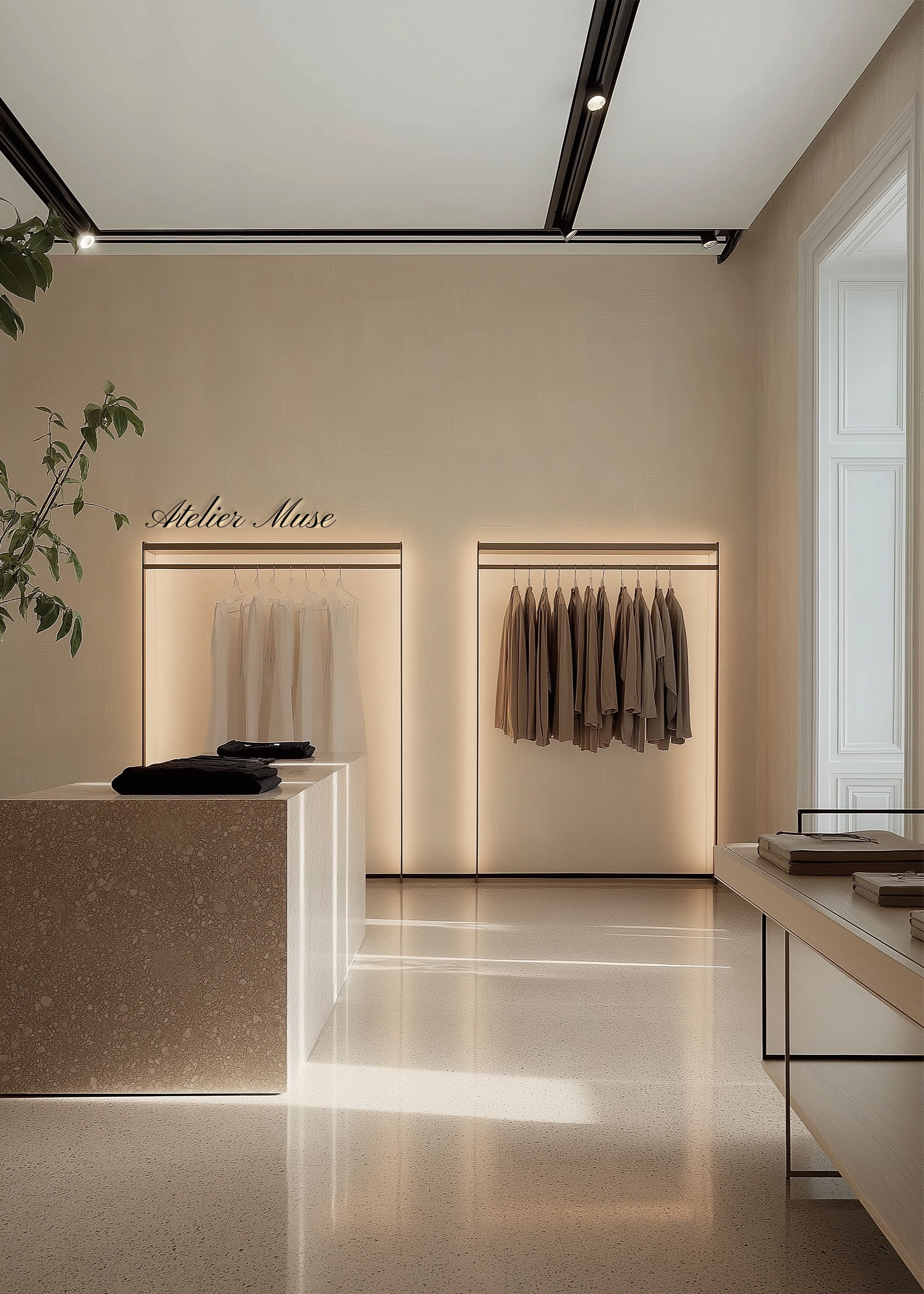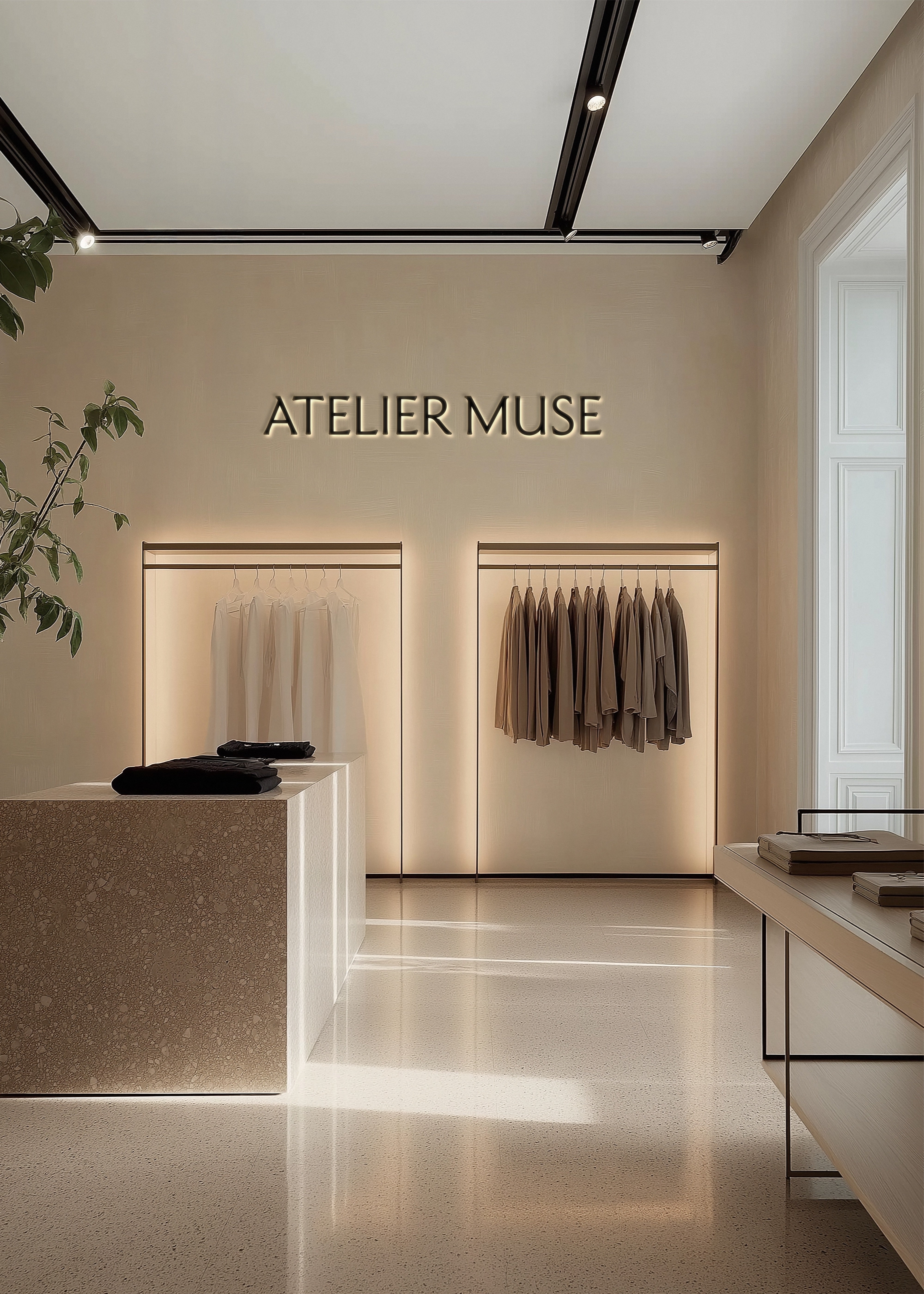 Bring your branding to life with our modern, aesthetically pleasing Retail Space Mockup. The minimal aesthetic of the mockup blends seamlessly with any design, allowing your work to take centre stage. The modern, stylish interior shimmers with potential, ready to mirror the essence of your brand. This isn't just about showcasing your design - it's about immersing your clients in your brand's narrative, allowing them to feel the ambiance, and appreciate the thoughtfulness behind every design detail. As a brand designer, we know you don't just want to show your clients what you've created - you want to help them visualise the full potential of your design and our Boutique Space Mockup does just that.