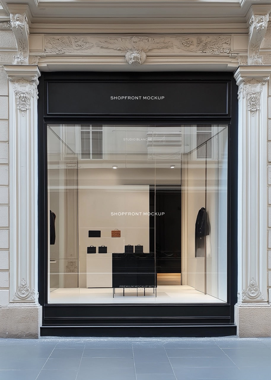 Elevate your design presentations with our exquisite Shopfront Mockup! Featuring a large shop window beautifully set against a pristine white wall adorned with stunning marble sculptures, this mockup is the perfect canvas for designers looking to impress clients and enhance their portfolios. Create striking visuals that capture attention and convey sophistication.