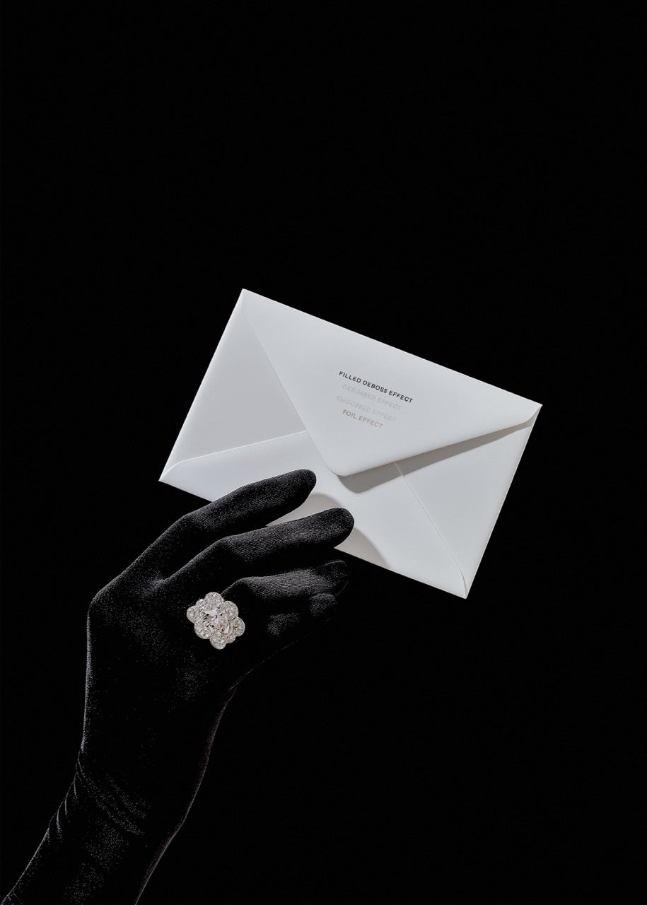 1 PSD file with smart layers including four print effects: filled deboss, blind deboss, blind emboss and gold foil.