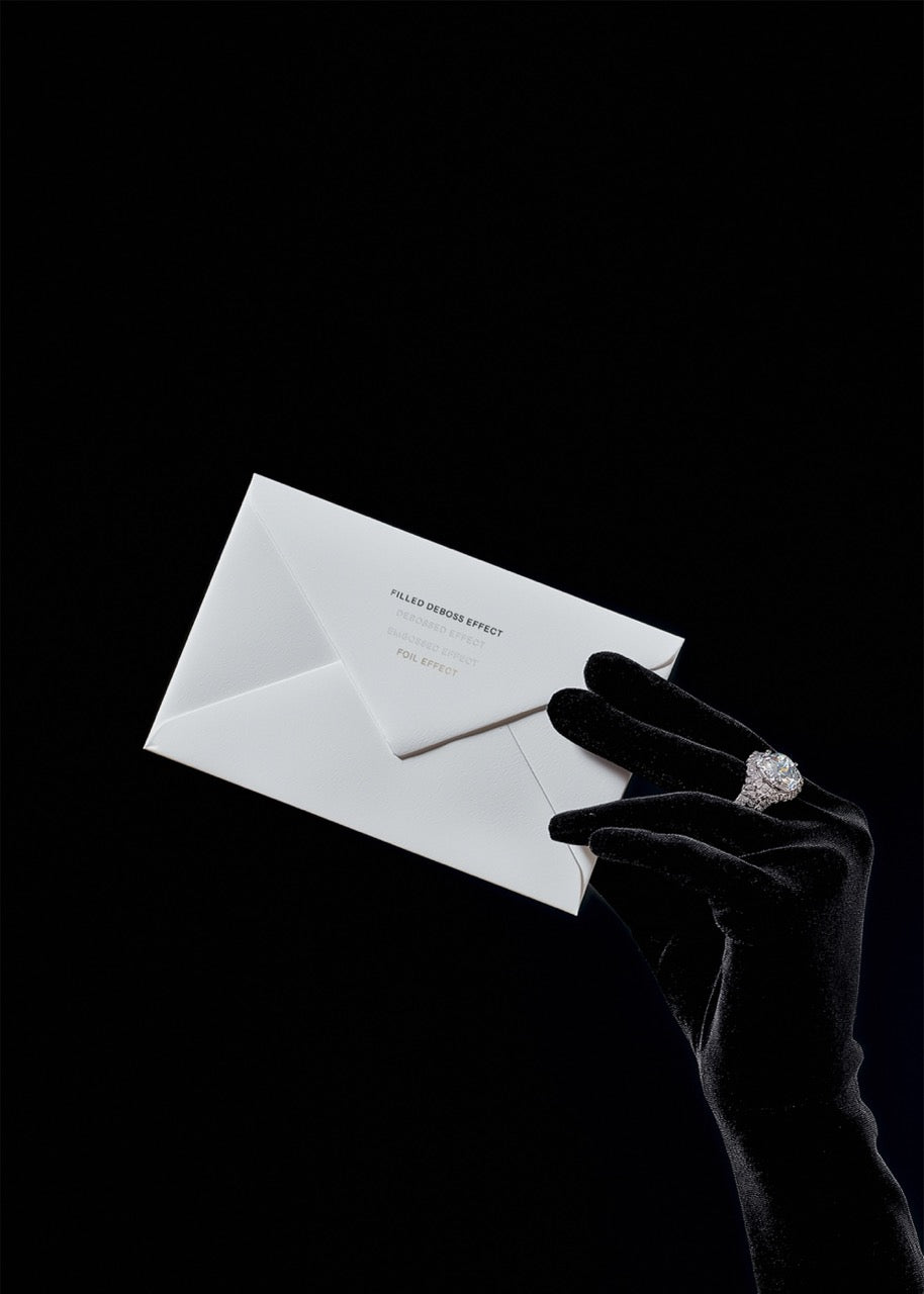 1 PSD file with smart layers including four print effects: filled deboss, blind deboss, blind emboss and gold foil.