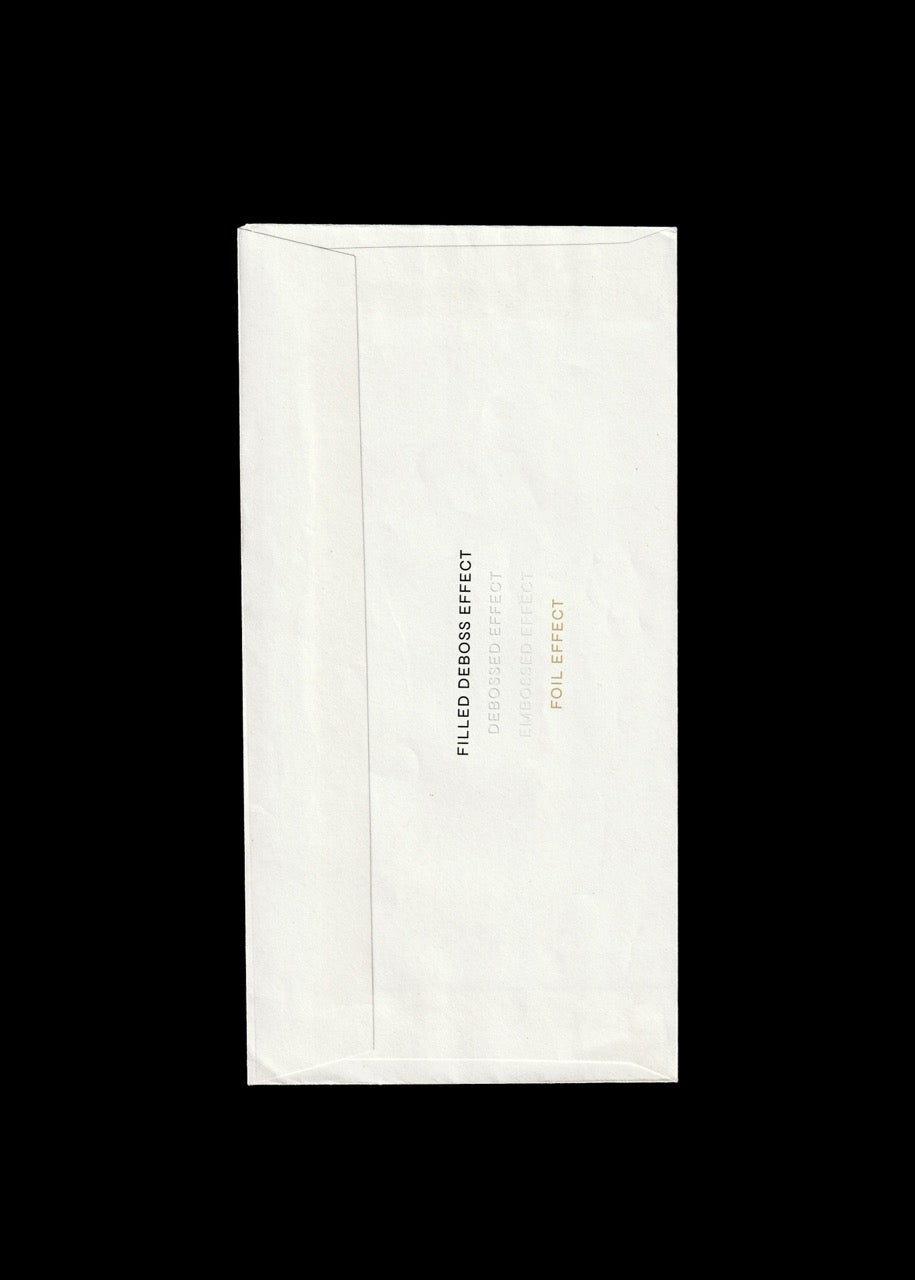 1 PSD file with smart layers including four print effects: filled deboss, blind deboss, blind emboss and gold foil.