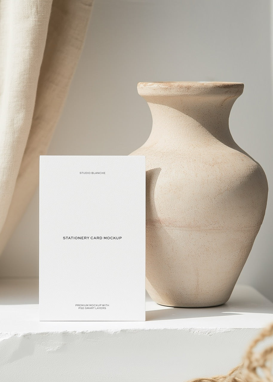 Enhance your portfolio with our Stationery Card Mockup, an essential tool for designers who want to showcase their stationery designs with a touch of sophistication. Crafted with attention to detail, this mockup has been designed to highlight the uniqueness of your work while providing a realistic and aesthetically pleasing preview of your stationery design. Our mockup features a neutral lifestyle background that complements any design, allowing your work to be the centre of attention. Airy aesthetics evoke a sense of simplicity and elegance, crafting a serene and chic environment for your designs. The mockup is easy to use – simply place your design in the placeholder using the smart object layer, adjust it as needed, and your professional presentation is ready to impress!