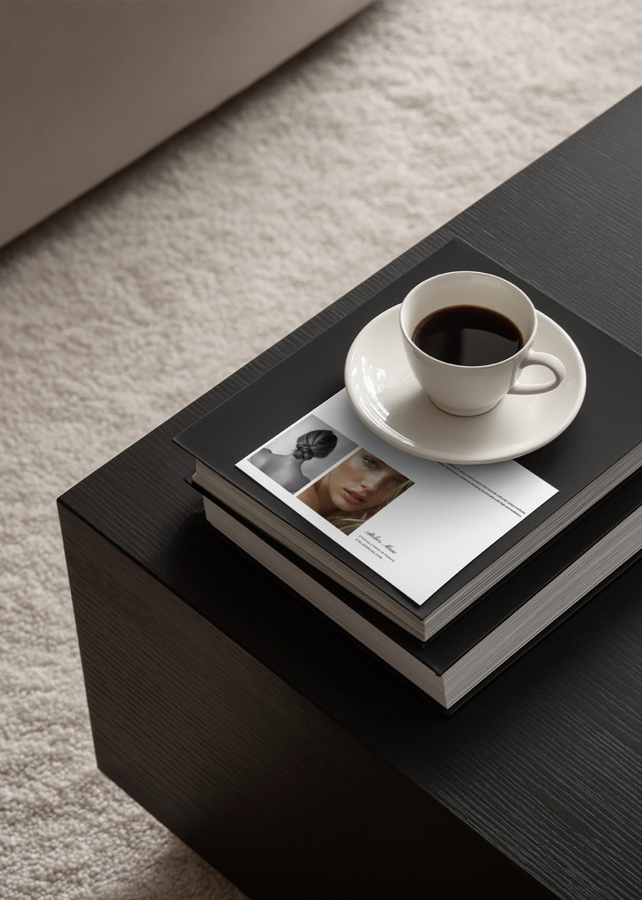 Transform your creative vision into a visual masterpiece with this A4 Card Mockup, artfully arranged on elegantly stacked books and a sumptuous dark timber coffee table. The luxurious setting invites the viewer to appreciate the fine details of your stationery, from delicate typography to textured finishes. Ideal for portfolios, client presentations, or online shops, this mockup offers an evocative backdrop that amplifies the allure and sophistication of your work, ensuring your designs are truly unforgettable.