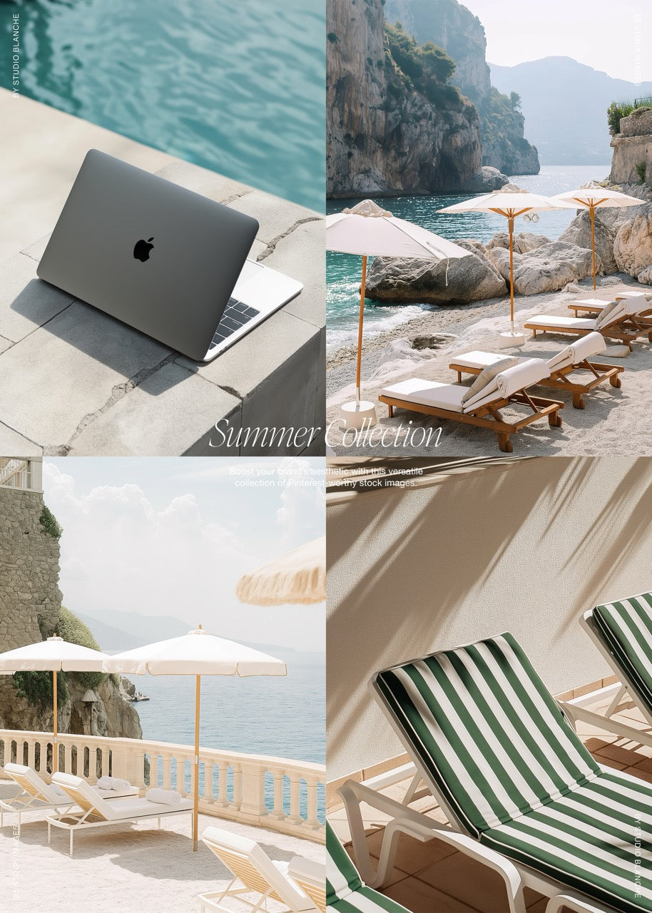 Boost your brand's aesthetic with our Pinterest-worthy collection of stock images. This collection includes striking closeups, private beach club images, landscape and lifestyle shots, ideal for branding, graphic design, and social media platforms. Each image has been enhanced using premium upscaling software, guaranteeing the high image quality.