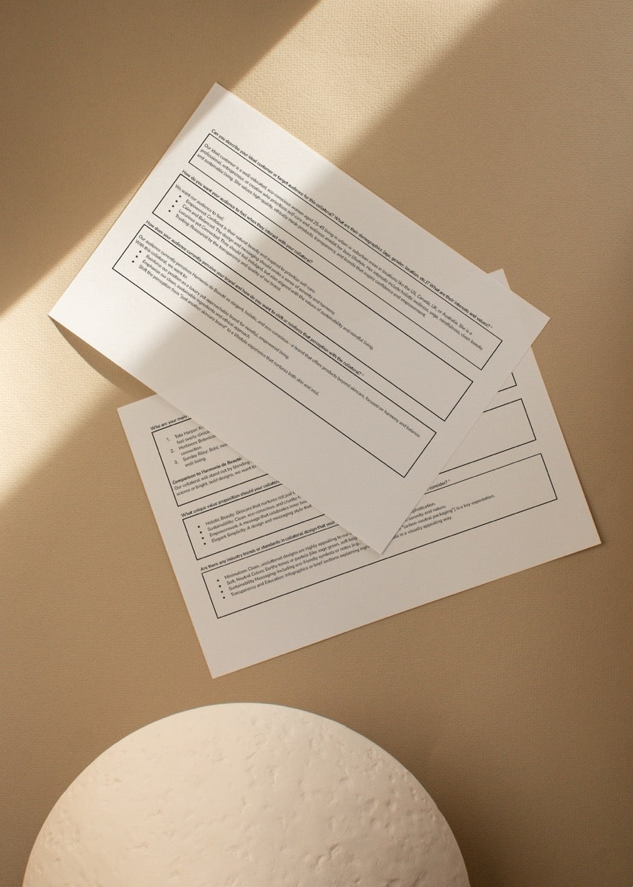 Fully Editable & Customisable: Modify every section to align with your studio's workflow and specific collateral types. Add, remove, or adjust questions to suit projects ranging from business cards to brand guidelines.