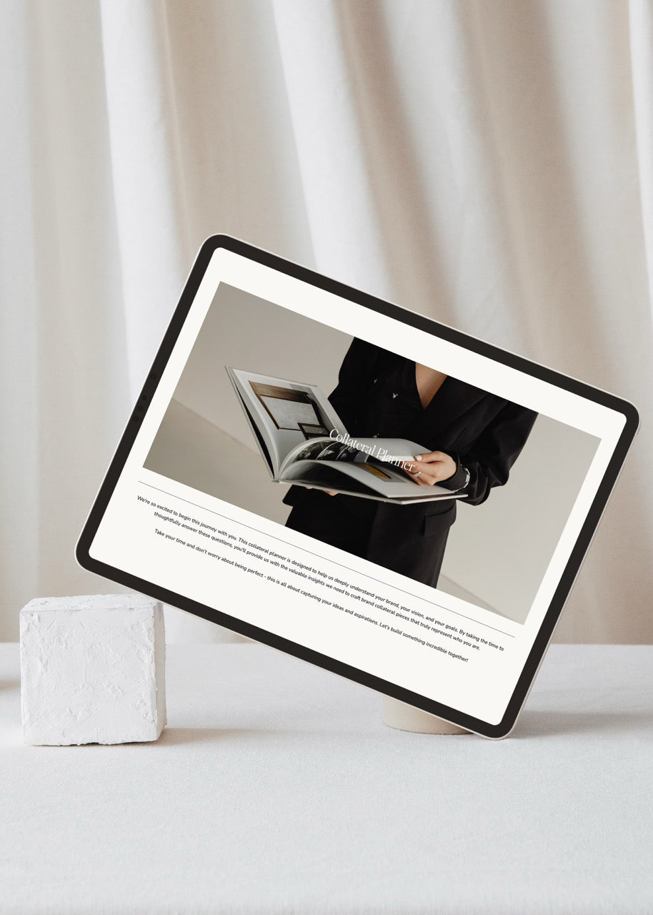 The Collateral Questionnaire Template is designed to help you gather all the details you need to create strategic, on-brand collateral for your clients. This template simplifies the process of understanding your client’s vision, audience, and preferences, ensuring you have a clear direction before starting any design work. By using this structured approach, you can align expectations, avoid miscommunication, and create collateral that resonates with your client’s brand identity and goals. Fully customisable and straightforward to use, this template helps you save time, stay organised, and deliver polished, impactful designs every time.