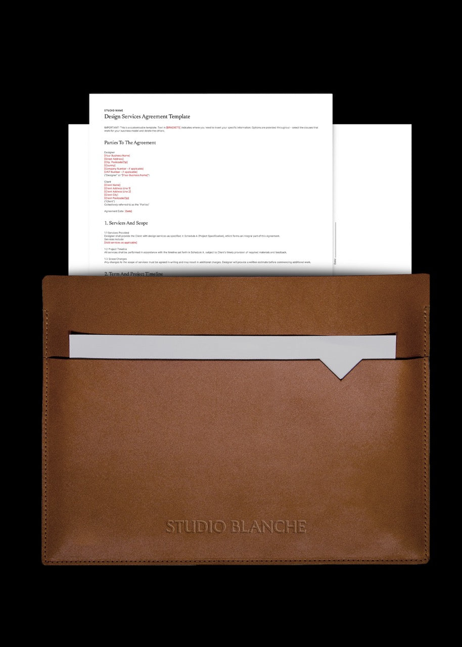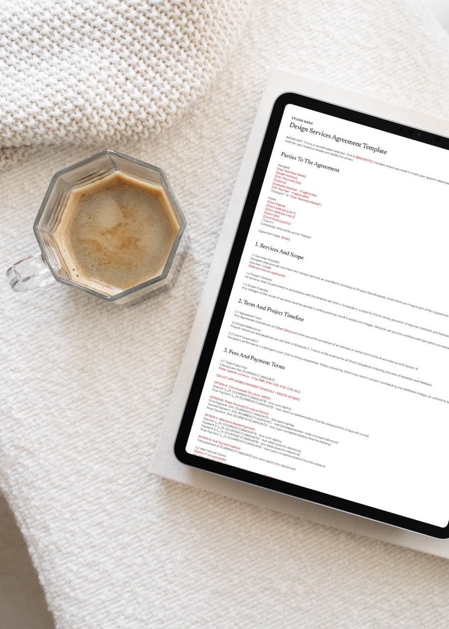 You've built your design business from the ground up. Your contract should protect it just as fiercely. Most designers are working with generic templates that create more problems than they solve - contracts full of gaps, confusing clauses, or terms that simply don't match how design projects actually unfold. This Designer Contract Template is built specifically for brand, graphic, and web designers who need protection that fits their reality. Everything's customisable. Choose from multiple clause options, keep what works for your business model, delete what doesn't. The result? A contract that's actually yours. This is your legal foundation when clients go silent for weeks then suddenly need everything delivered yesterday. Your clear boundary when "just one more tweak" turns into scope creep. Your framework for handling early project endings, payment disputes, and those messy questions about ownership and next steps. Real protection. Real flexibility. Built for how you actually work.
