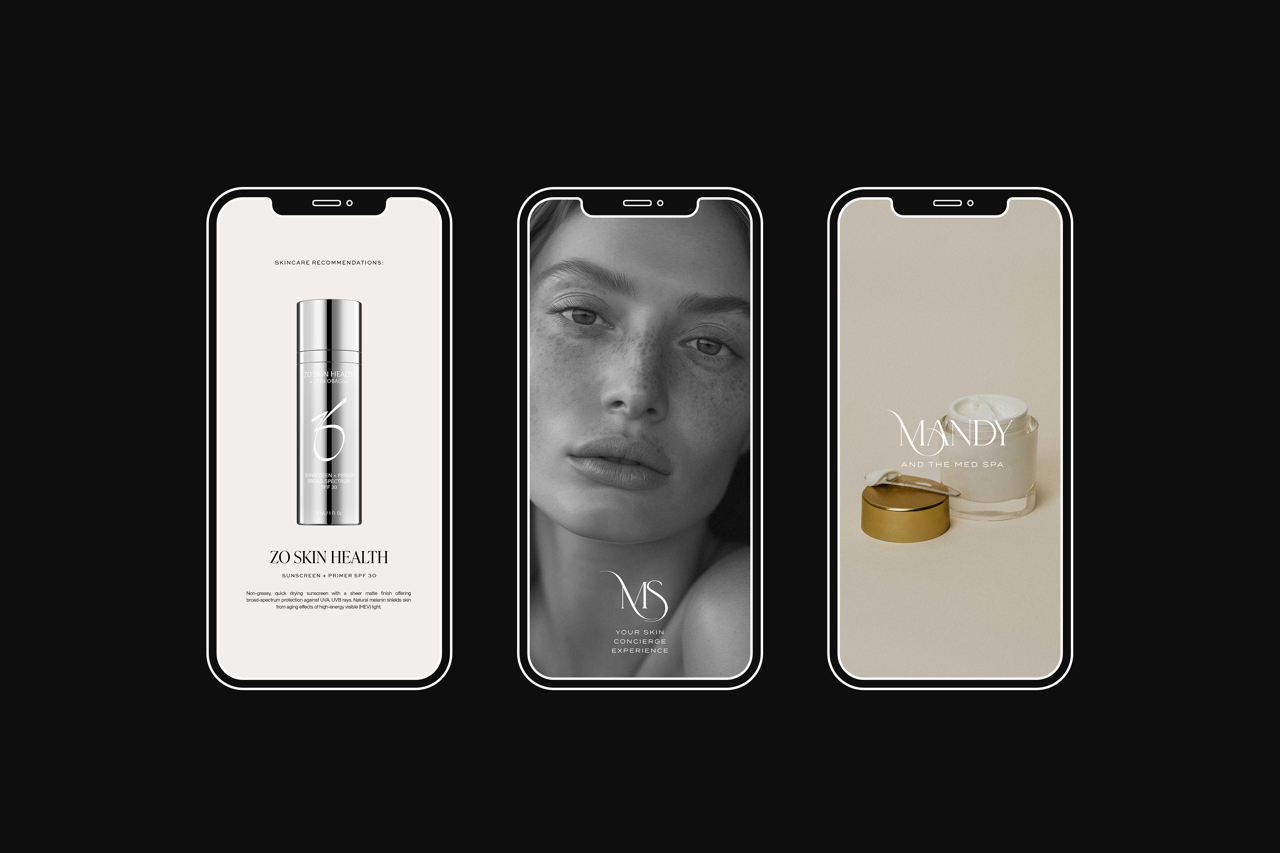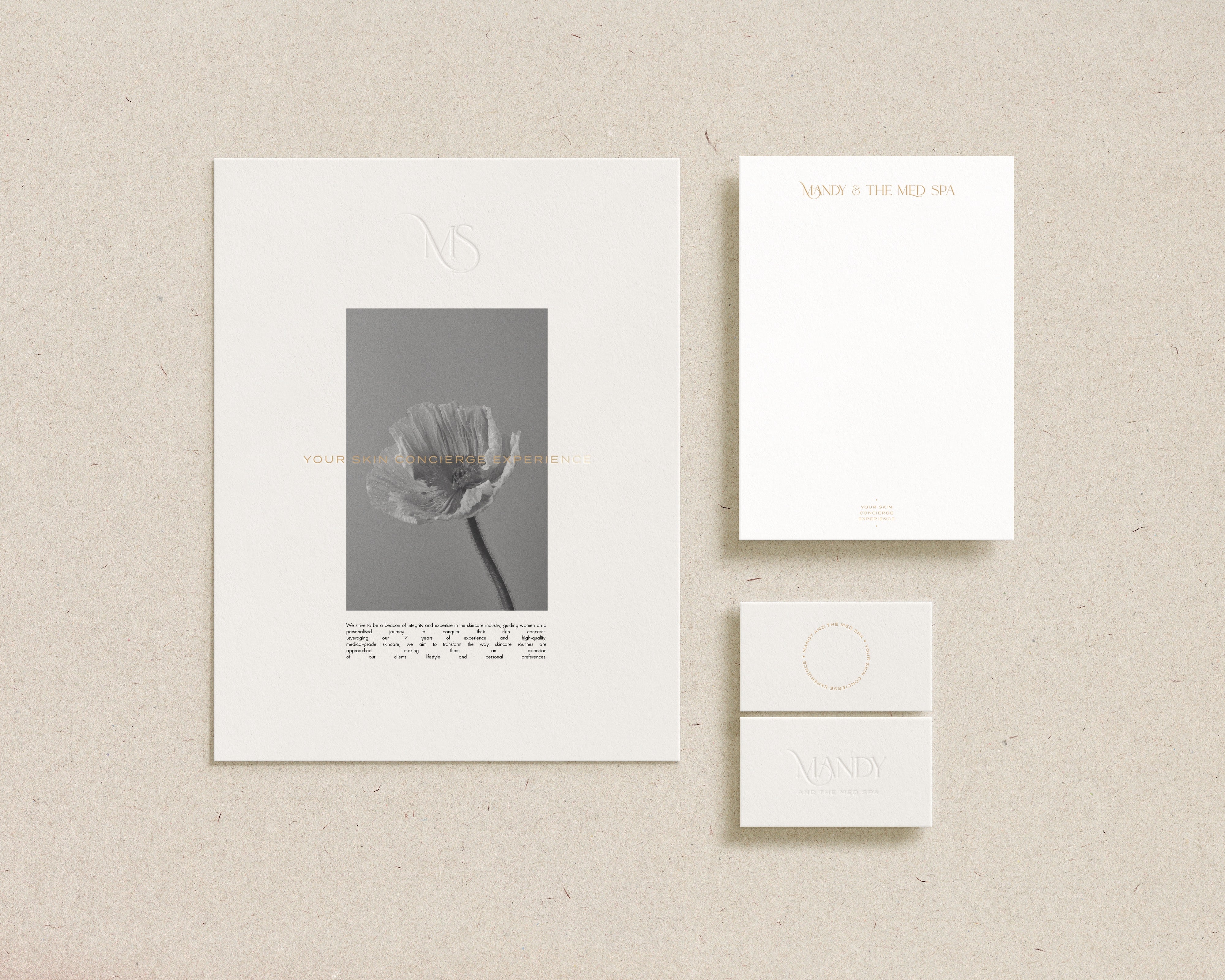 We extended this sophisticated identity across all brand touchpoints to create a cohesive, luxurious experience. From premium stationery featuring rich textured papers with blind emboss details to a carefully curated neutral colour palette that evokes warmth and authenticity, every element was designed with intentionality. The brand's photography direction emphasizes natural light, real skin textures, and the welcoming ambiance of the clinic space, ensuring the visual identity feels as authentic and approachable as the service itself. The result is a brand that communicates both luxury and accessibility - positioning Mandy and the Med Spa as the trusted choice for women seeking not just treatments, but a transformative skincare partnership.