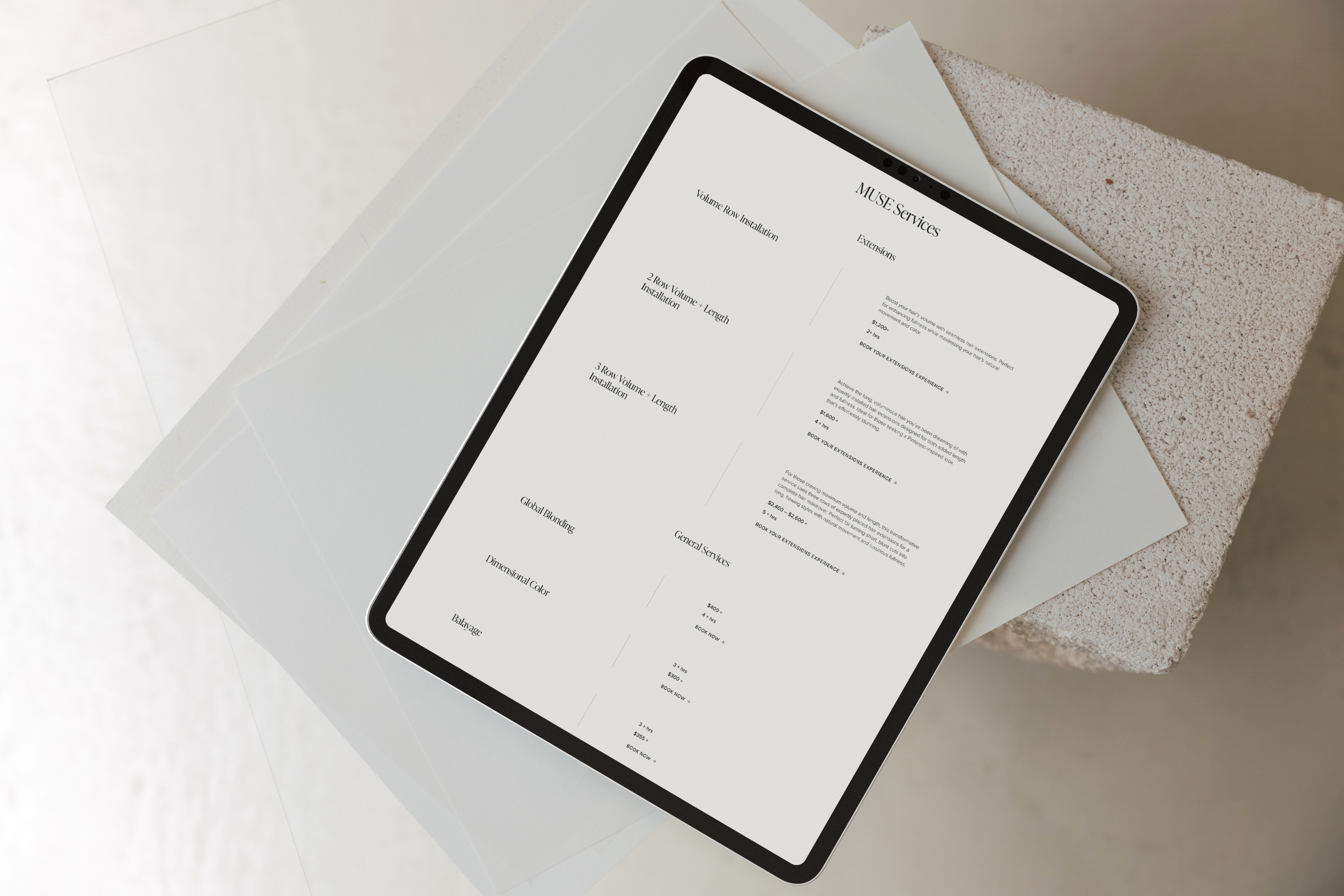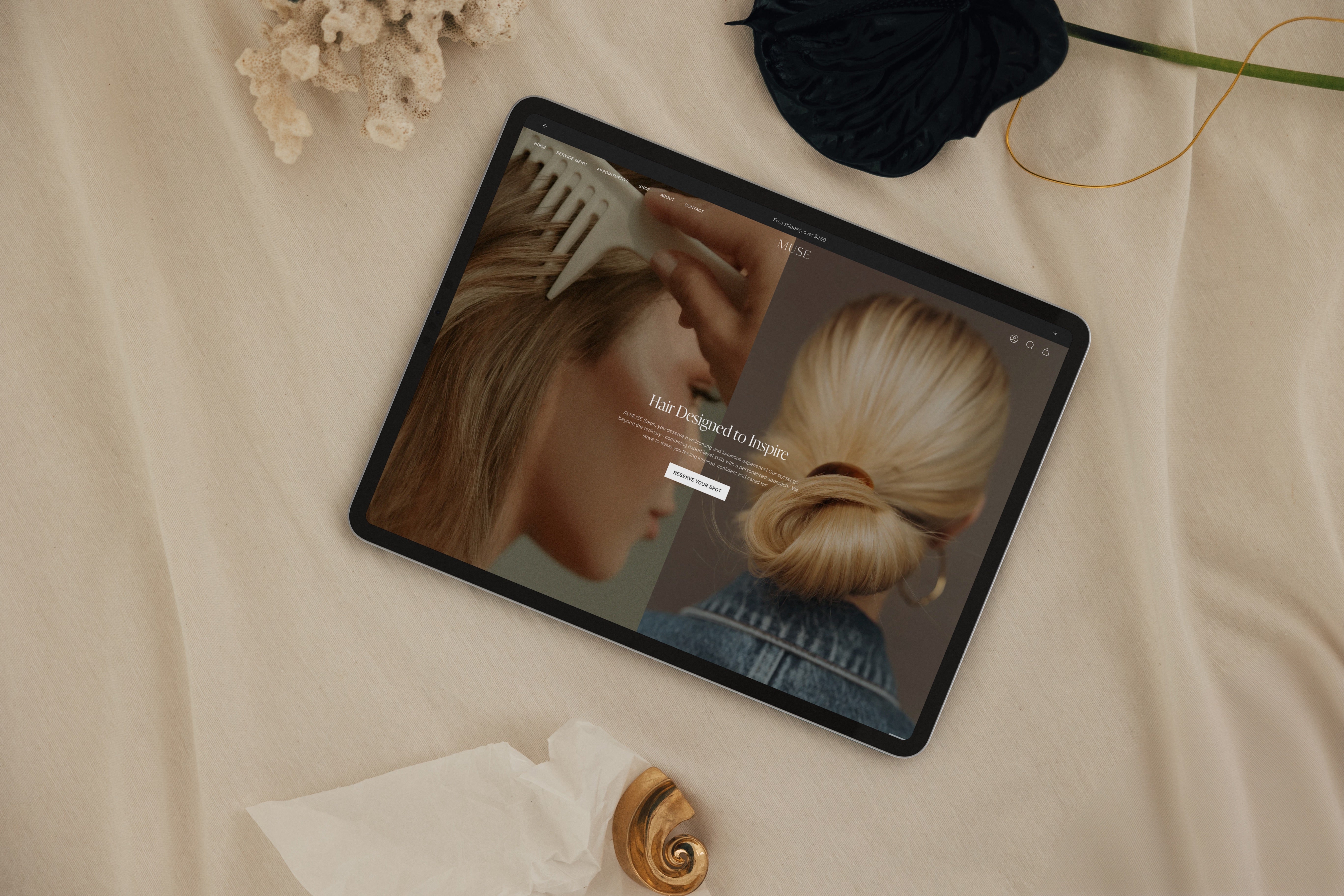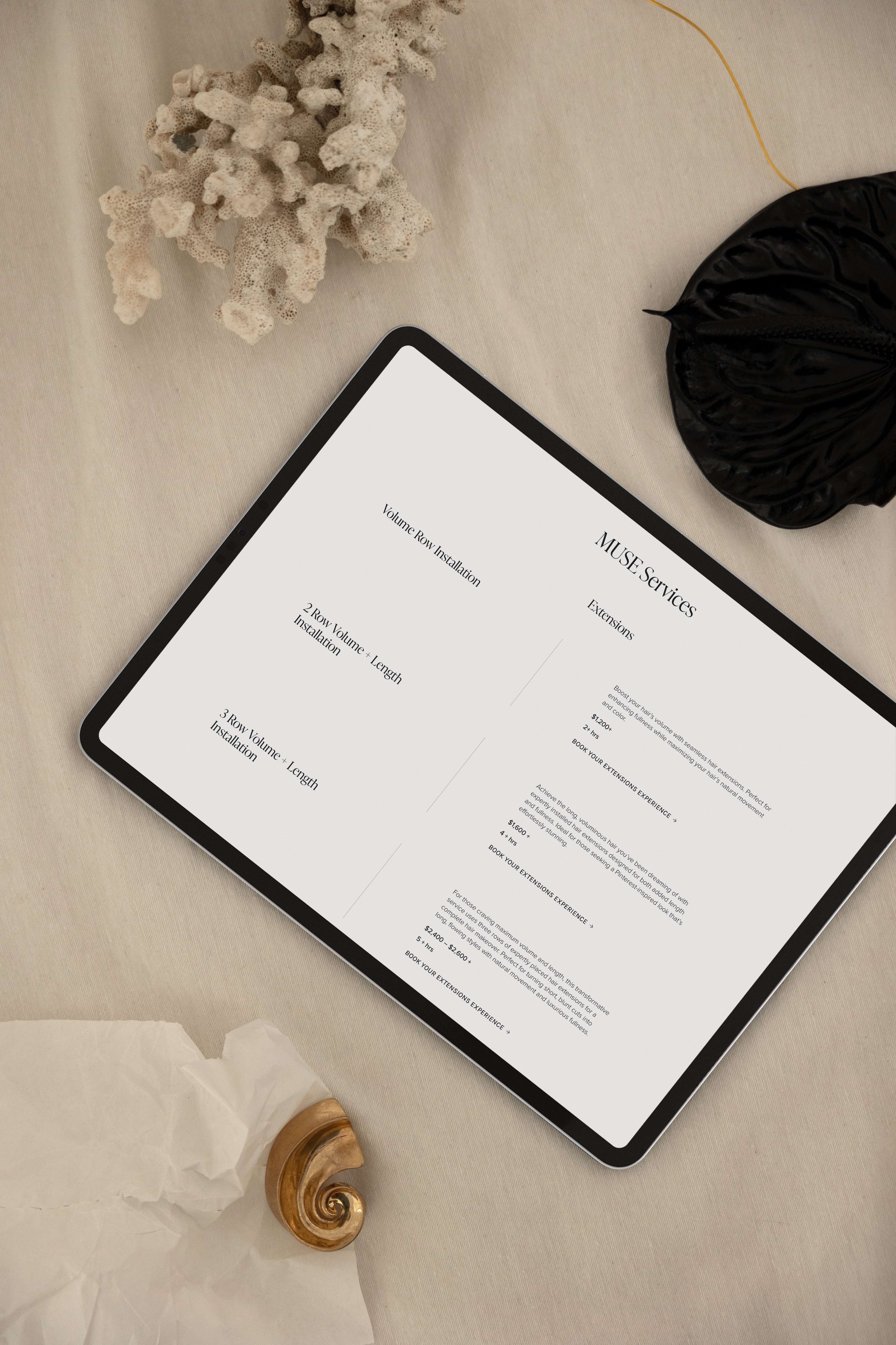 Our mission was to create a comprehensive digital platform that would capture the elevated, luxurious essence of Muse Salon while providing seamless functionality for both service bookings and product sales. We wanted to create an online experience that mirrors the salon's commitment to care and precision, making it effortless for clients to engage with the brand from anywhere.