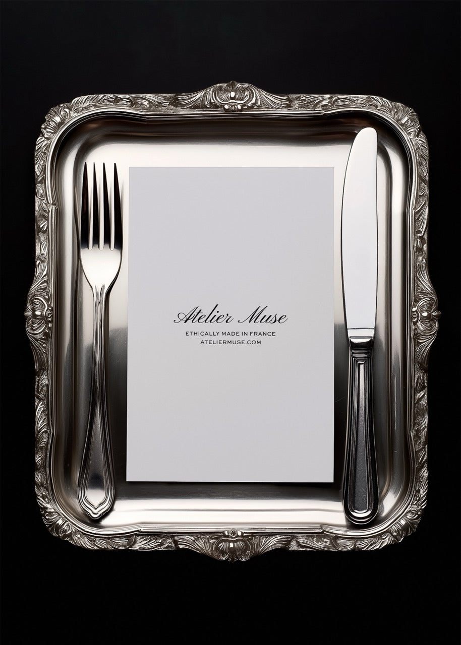 Impress clients and elevate your design portfolio with the Stationery Card Mockup from our exclusive Couverts Collection. Styled atop a vintage dinner tray, this mockup provides an atmospheric and elegant context for your stationery creations. Essential for designers who value premium presentation, this mockup not only highlights your artistic vision but also enhances the perceived value of your work. Make every detail count and captivate your audience effortlessly.
