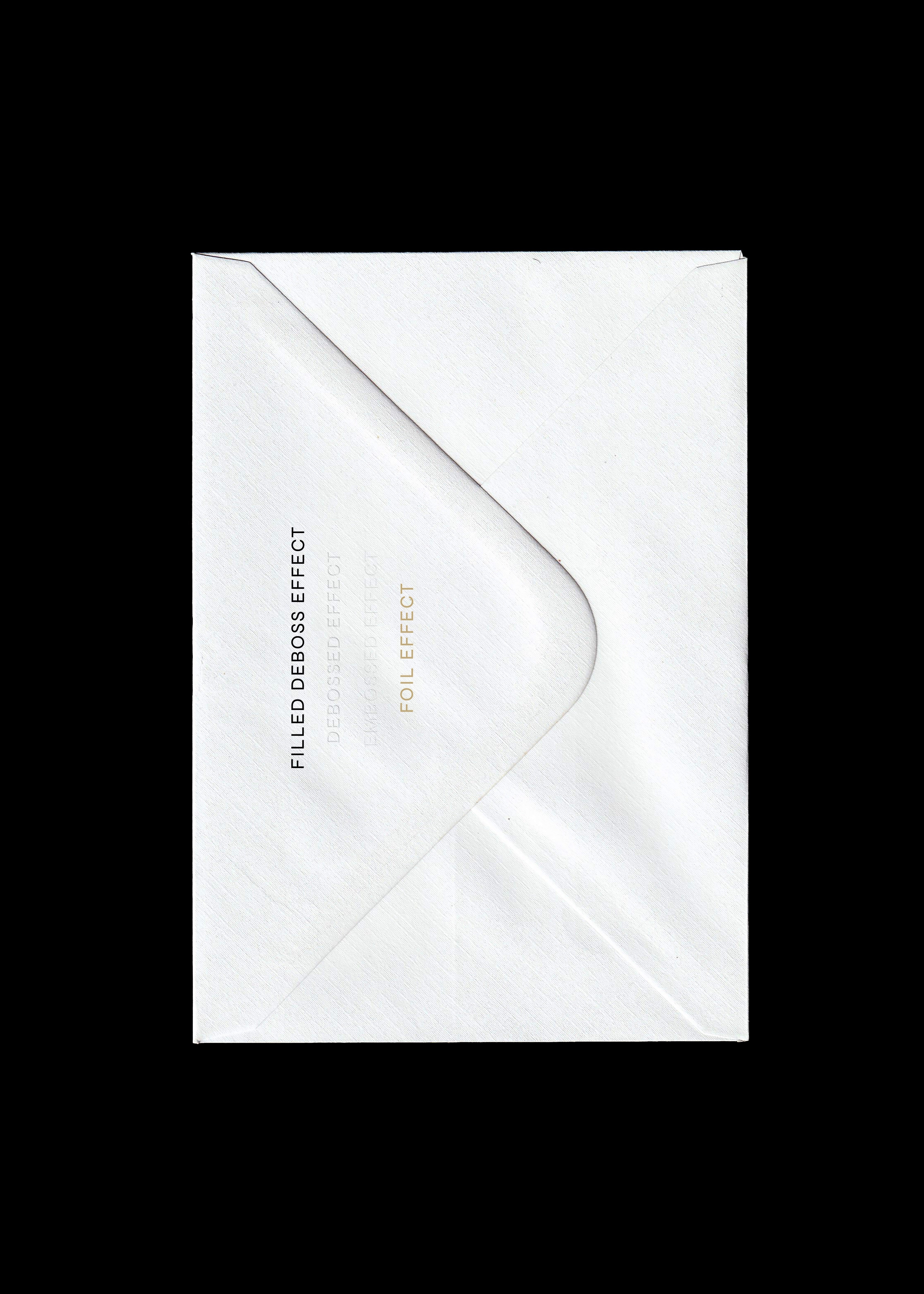 1 PSD file with smart layers including four print effects: filled deboss, blind deboss, blind emboss and gold foil.