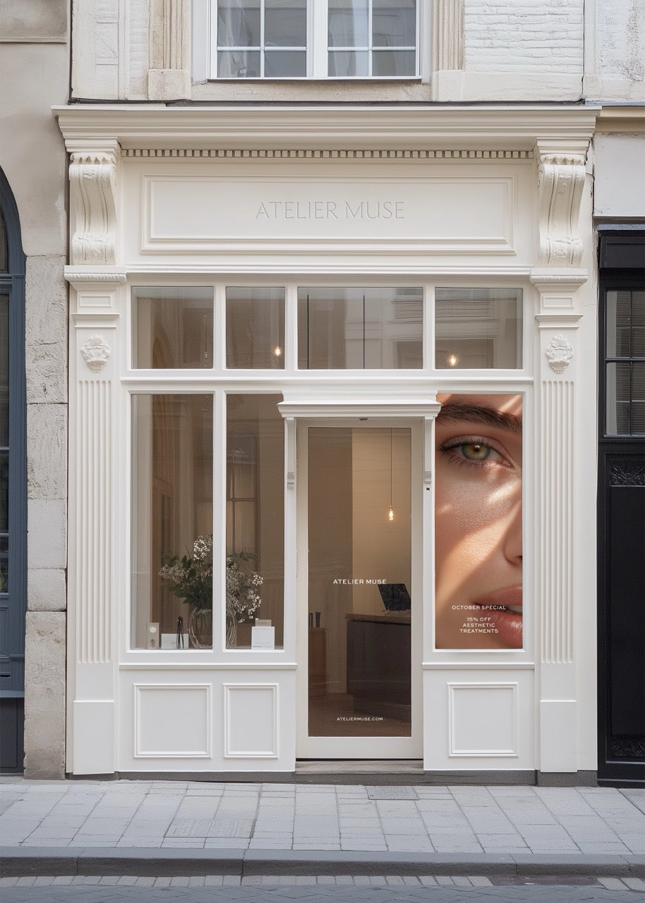 Meet our Salon Facade Mockup - tool for brand designers wanting to showcase their projects with a touch of realism and sophistication. Perfectly tailored for hair, beauty, and nail salon facades, this mockup brings your design vision to life. Designed to evoke the aesthetics of luxury salon spaces, it ensures that your shopfront projects look professional. Thanks to the smart object layers, integrating your designs is super easy and allows you to showcase a realistic shopfront design in minutes!