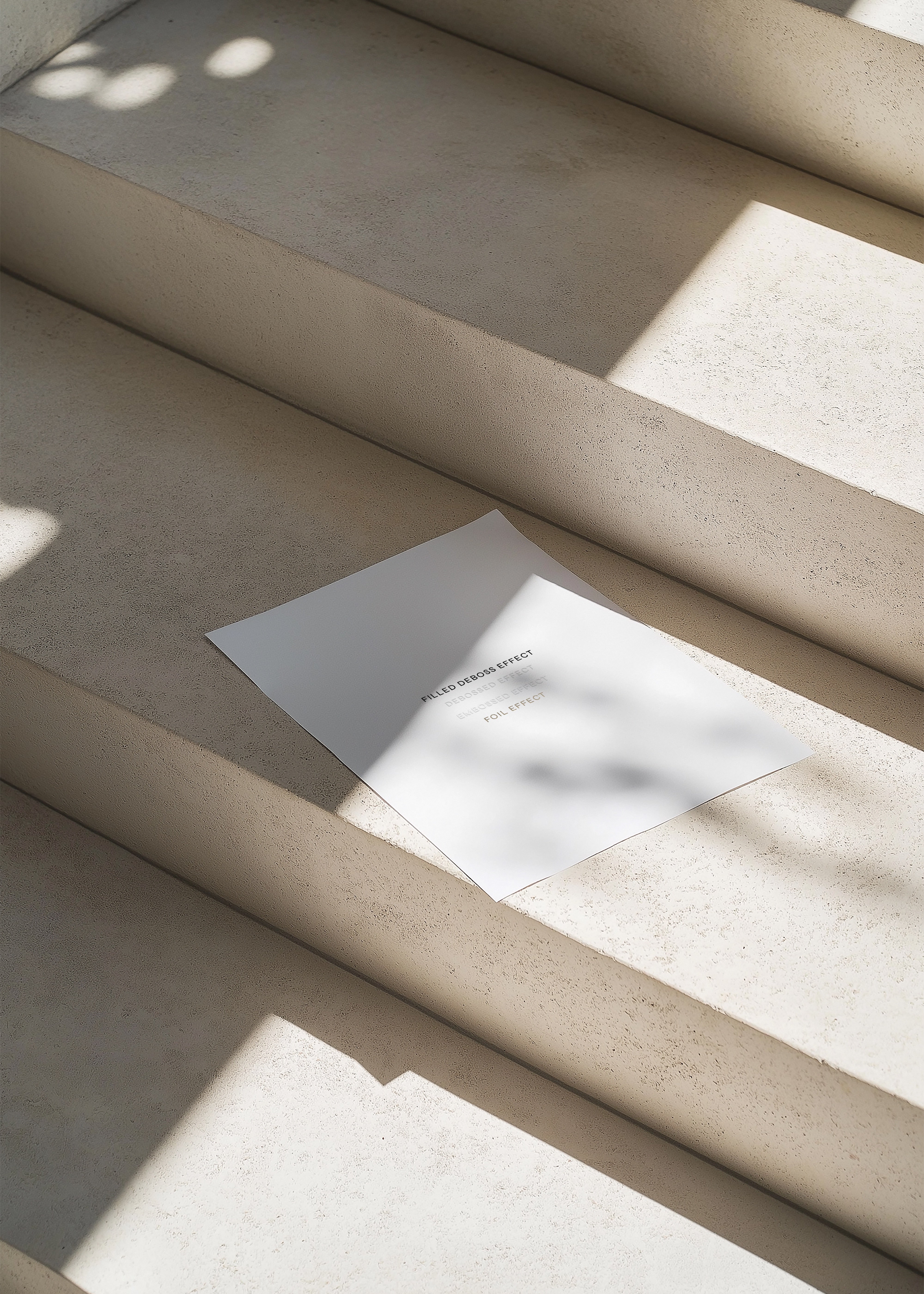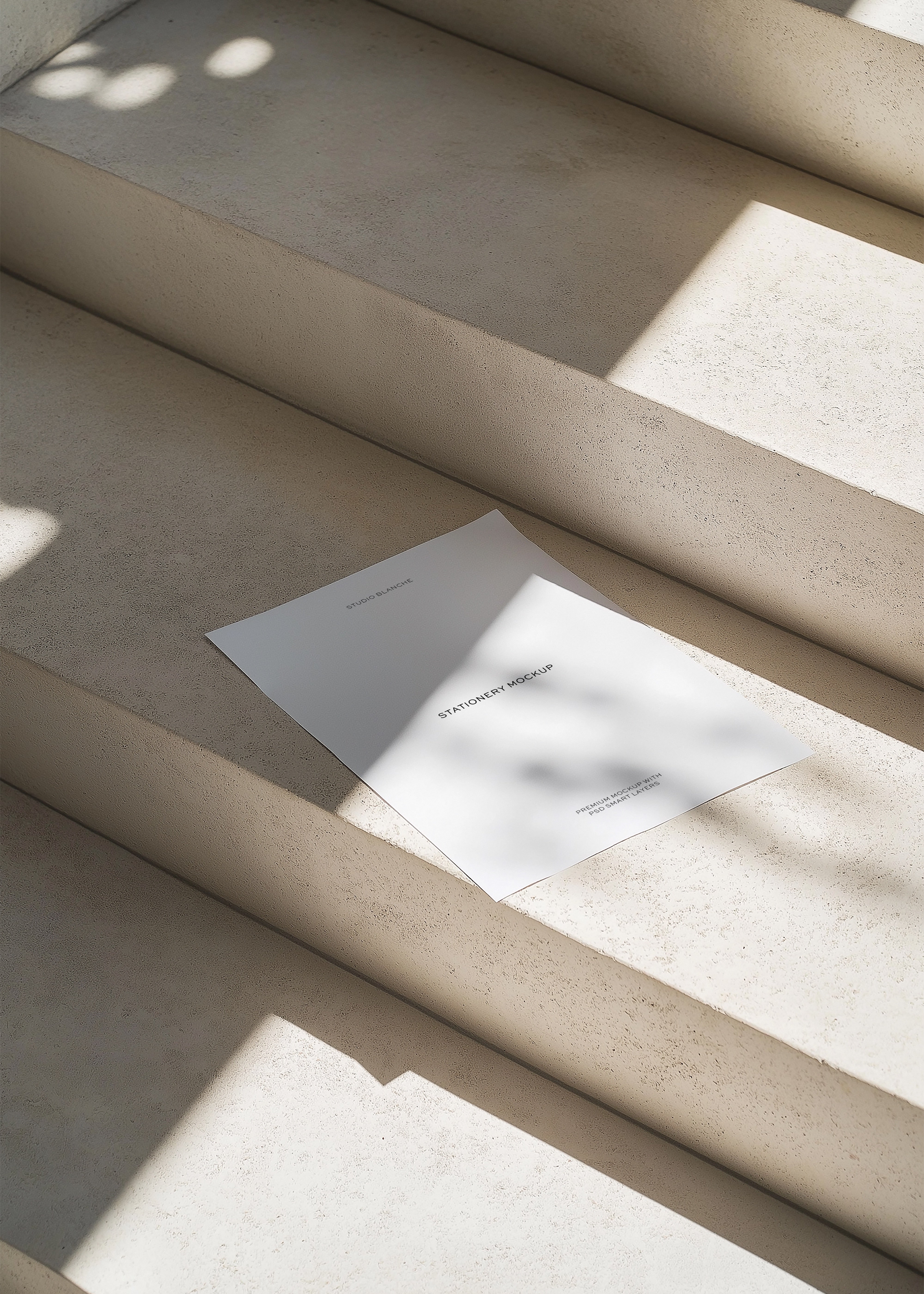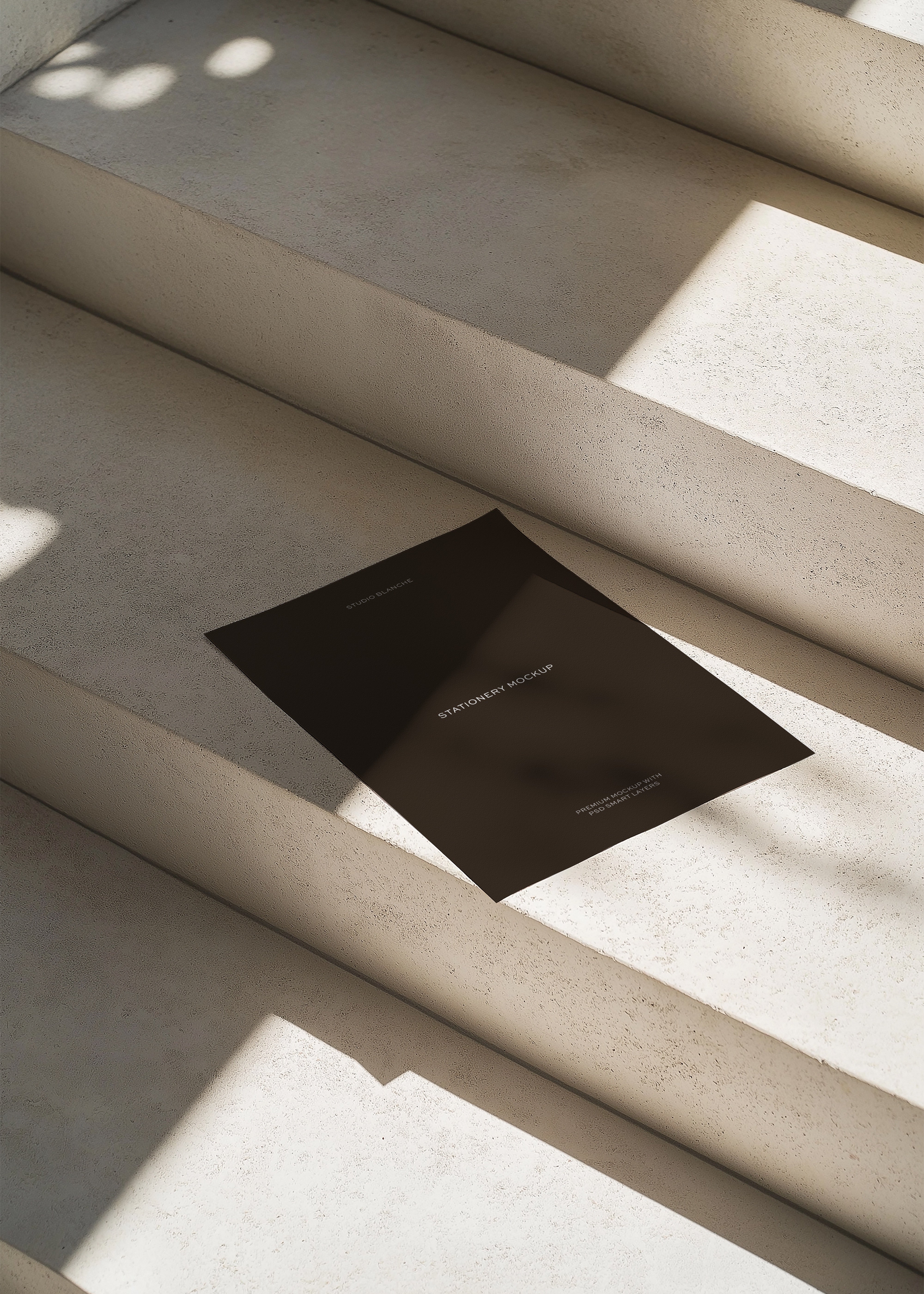 Our Stationery Card Mockup is your ticket to making your designs stand out in a sea of mediocrity. The combination of the white card and the stone steps backdrop provides a minimalistic charm that effortlessly captures the attention of your clients. This isn't just about showcasing your work—it's about elevating it.